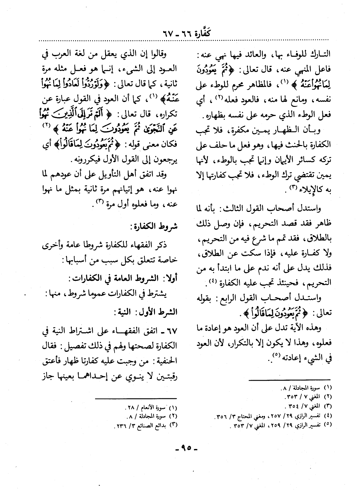 أَوَّلاً: الشُّرُوطُ الْعَامَّةُ فِي الْكَفَّارَاتِ: