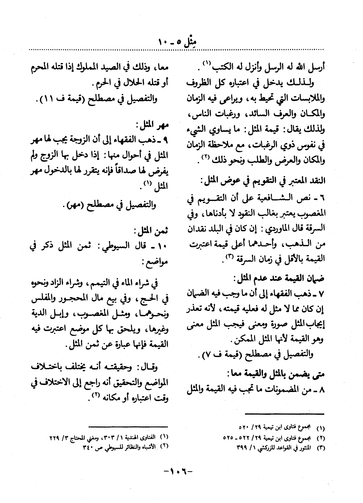 10 - قَال السُّيُوطِيُّ: ثَمَنُ الْمِثْل ذُكِرَ فِي مَوَاضِعَ: