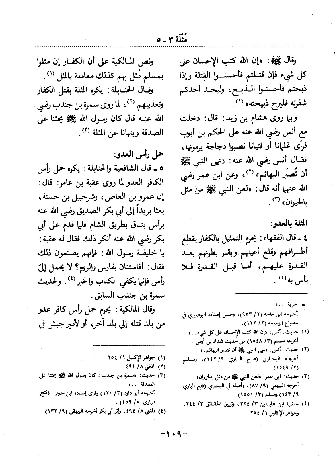 (3) حديث: ابن عمر: " لعن النبي صلى الله عليه وسلم من مثل بالحيوان ". أخرجه البيهقي (9 / 87) ، وأصله في البخاري (فتح الباري 9 / 643) ومسلم (3 / 1550) .