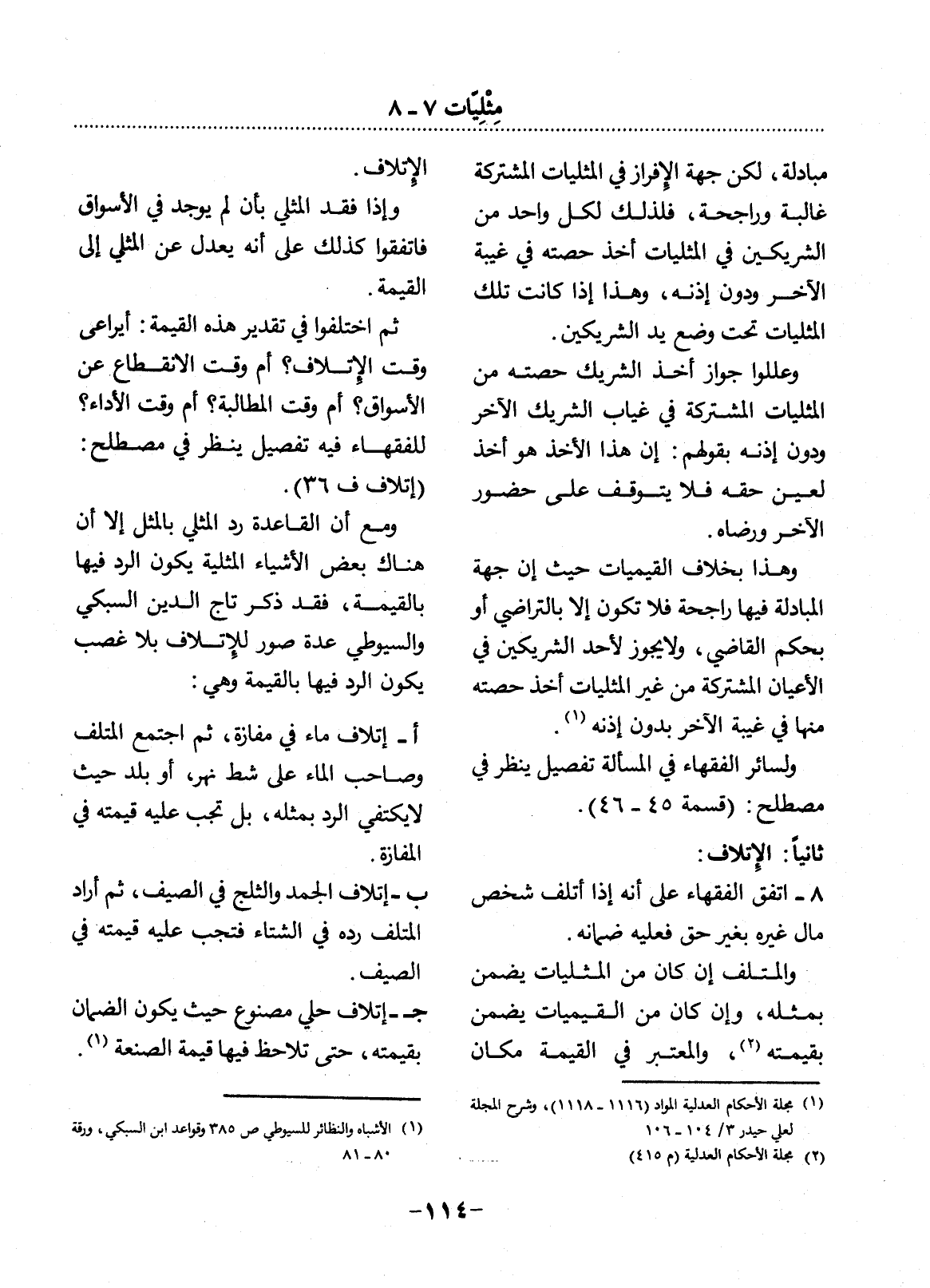 (1) مجلة الأحكام العدلية المواد (1116 - 1118) ، وشرح المجلة لعلي حيدر 3 / 104 - 106.