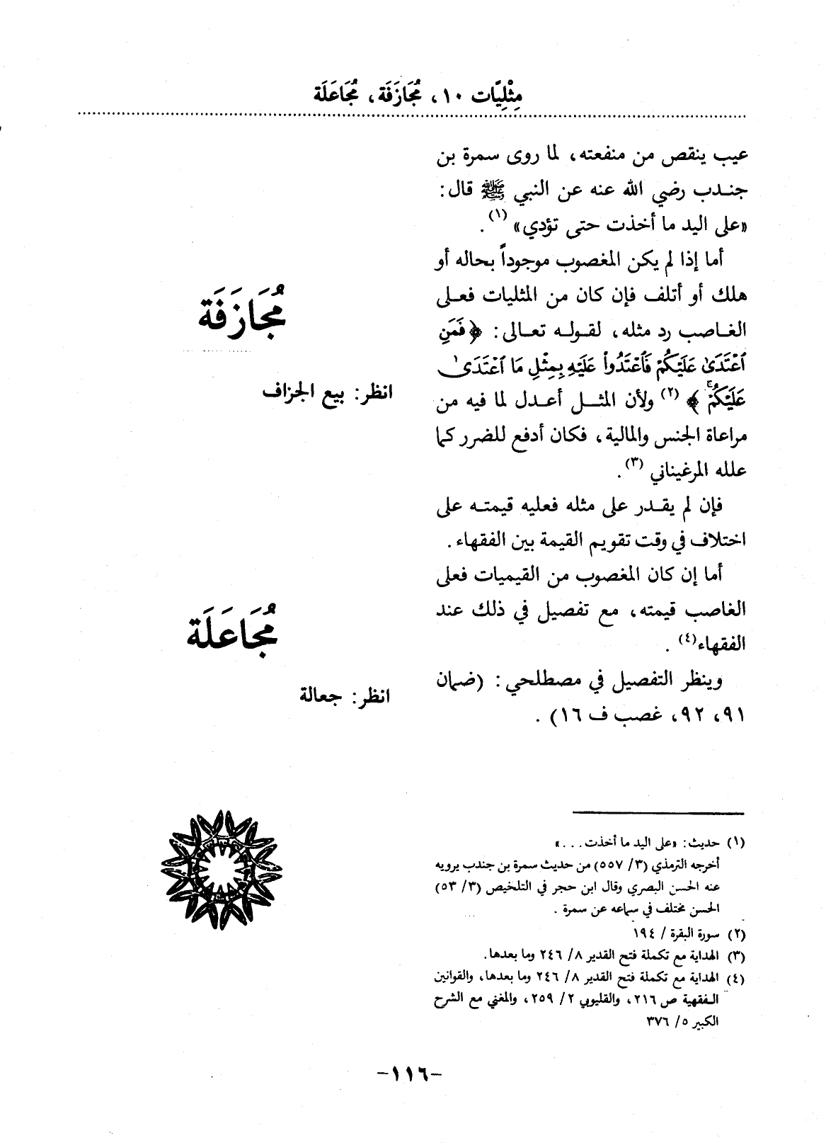 (1) حديث: " على اليد ما أخذت. . . ". أخرجه الترمذي (3 / 557) من حديث سمرة بن جندب يرويه عنه الحسن البصري وقال ابن حجر في التلخيص (3 / 53) الحسن مختلف في سماعه عن سمرة.