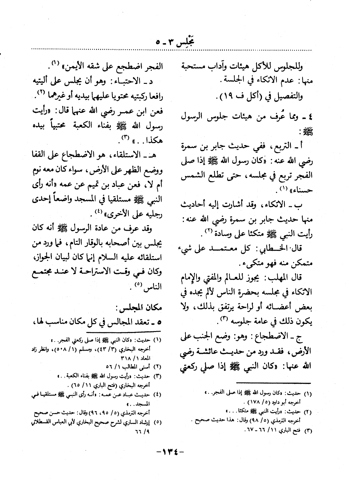 4 - وَمِمَّا عُرِفَ مِنْ هَيْئَاتِ جُلُوسِ الرَّسُول صَلَّى اللَّهُ عَلَيْهِ وَسَلَّمَ