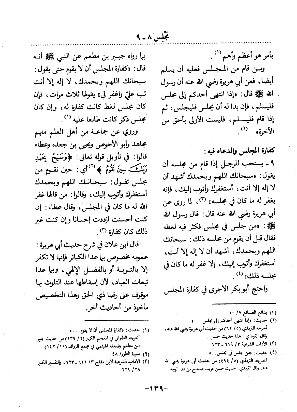 (4) حديث: " من جلس في مجلس. . ". أخرجه الترمذي (5 / 494) من حديث أبي هريرة رضي الله عنه، وقال الترمذي: حديث حسن غريب صحيح من هذا الوجه.