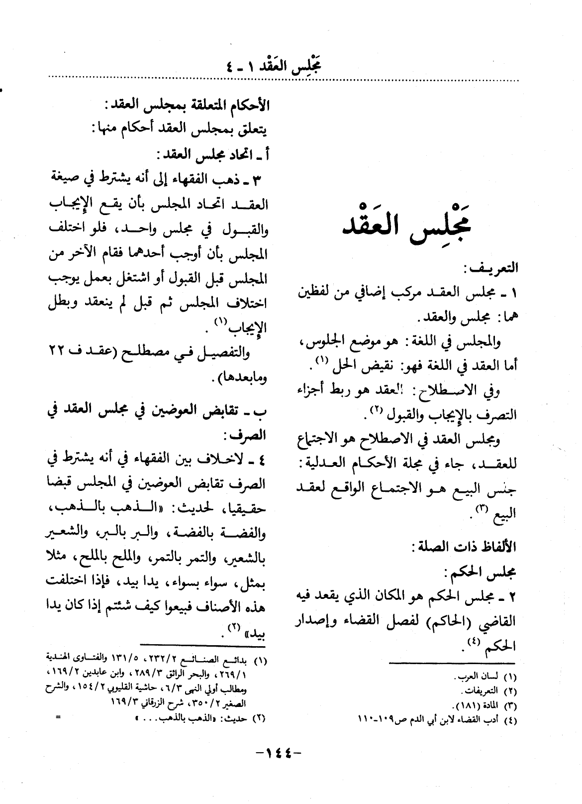وَالْمَجْلِسُ فِي اللُّغَةِ: هُوَ مَوْضِعُ الْجُلُوسِ، أَمَّا الْعَقْدُ فِي اللُّغَةِ فَهُوَ: نَقِيضُ الْحَل (1) .