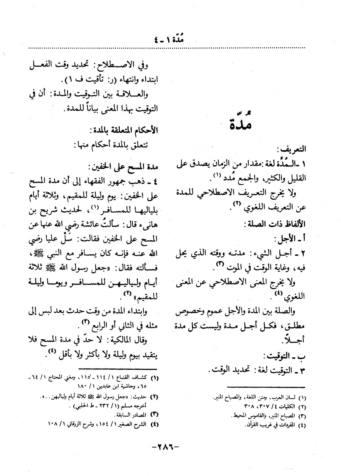وَلاَ يَخْرُجُ التَّعْرِيفُ الاِصْطِلاَحِيُّ لِلْمُدَّةِ عَنِ التَّعْرِيفِ اللُّغَوِيِّ (2) .