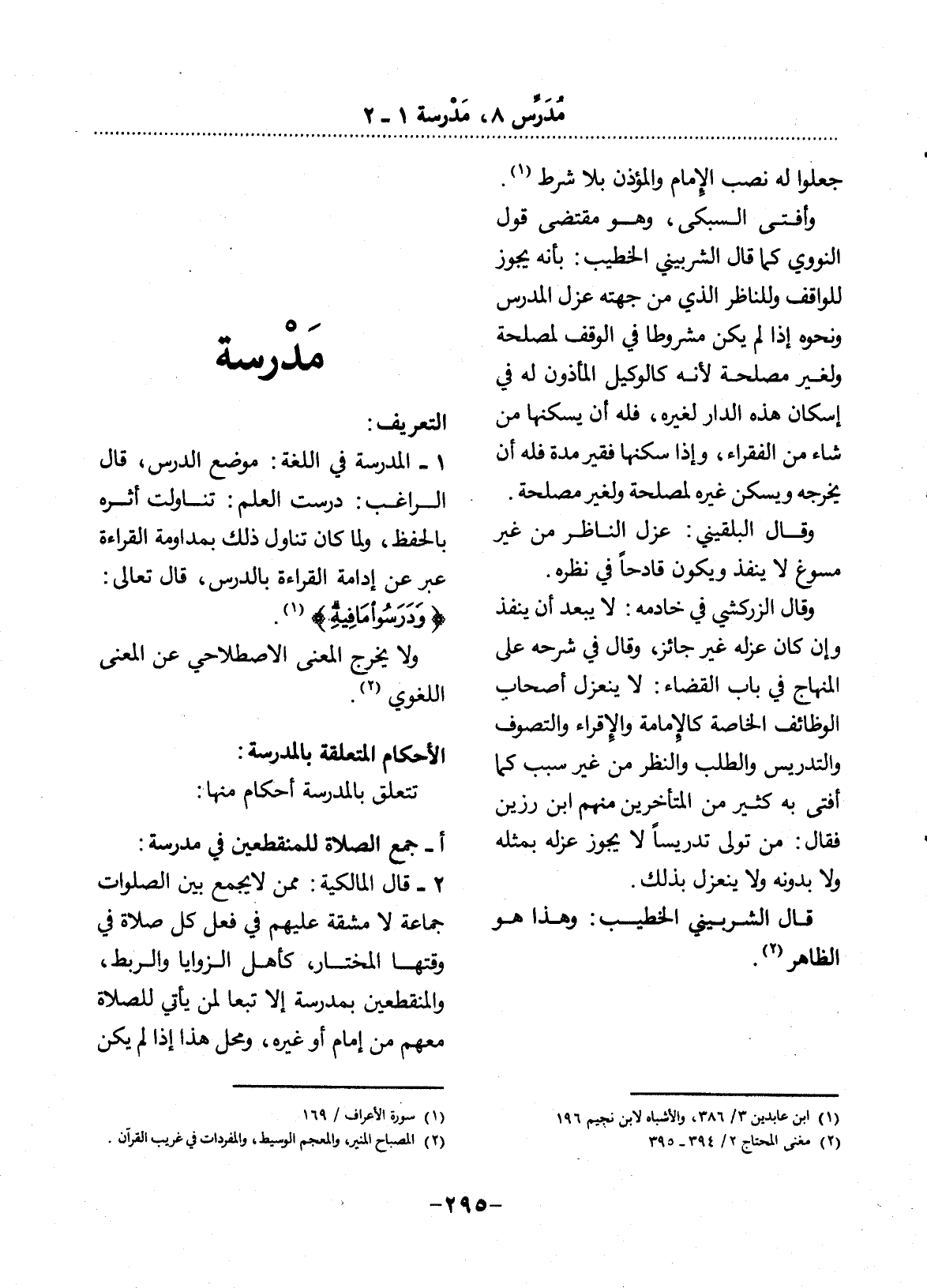 الأَْحْكَامُ الْمُتَعَلِّقَةُ بِالْمَدْرَسَةِ: