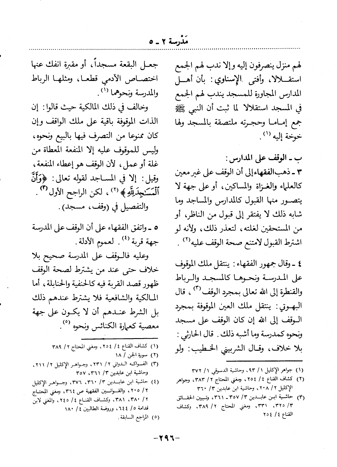5 - وَاتَّفَقَ الْفُقَهَاءُ عَلَى أَنَّ الْوَقْفَ عَلَى الْمَدْرَسَةِ جِهَةُ قُرْبَةٍ (4) .
