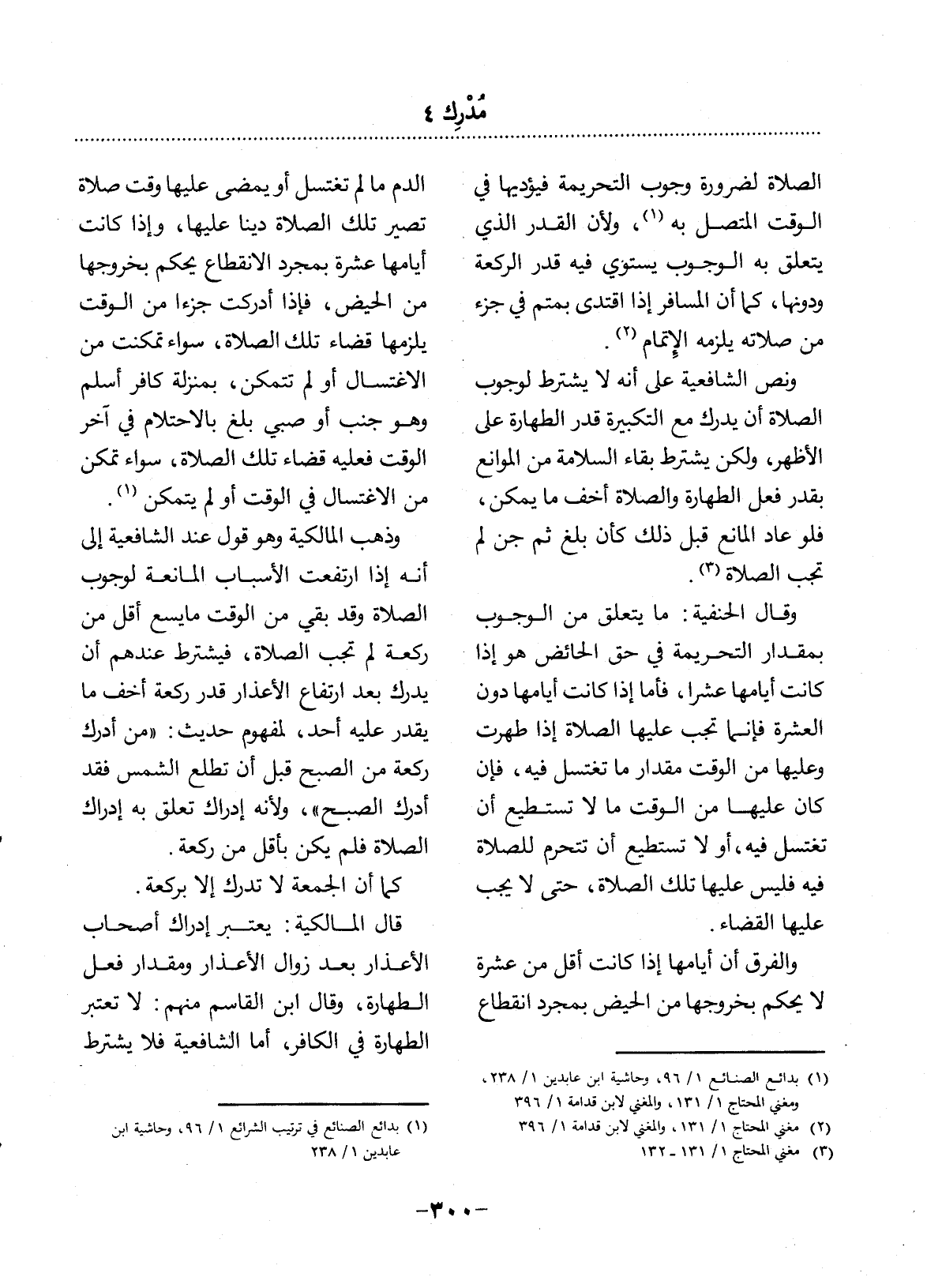 (1) بدائع الصنائع 1 / 96، وحاشية ابن عابدين 1 / 238، ومغني المحتاج 1 / 131، والمغني لابن قدامة 1 / 396.
