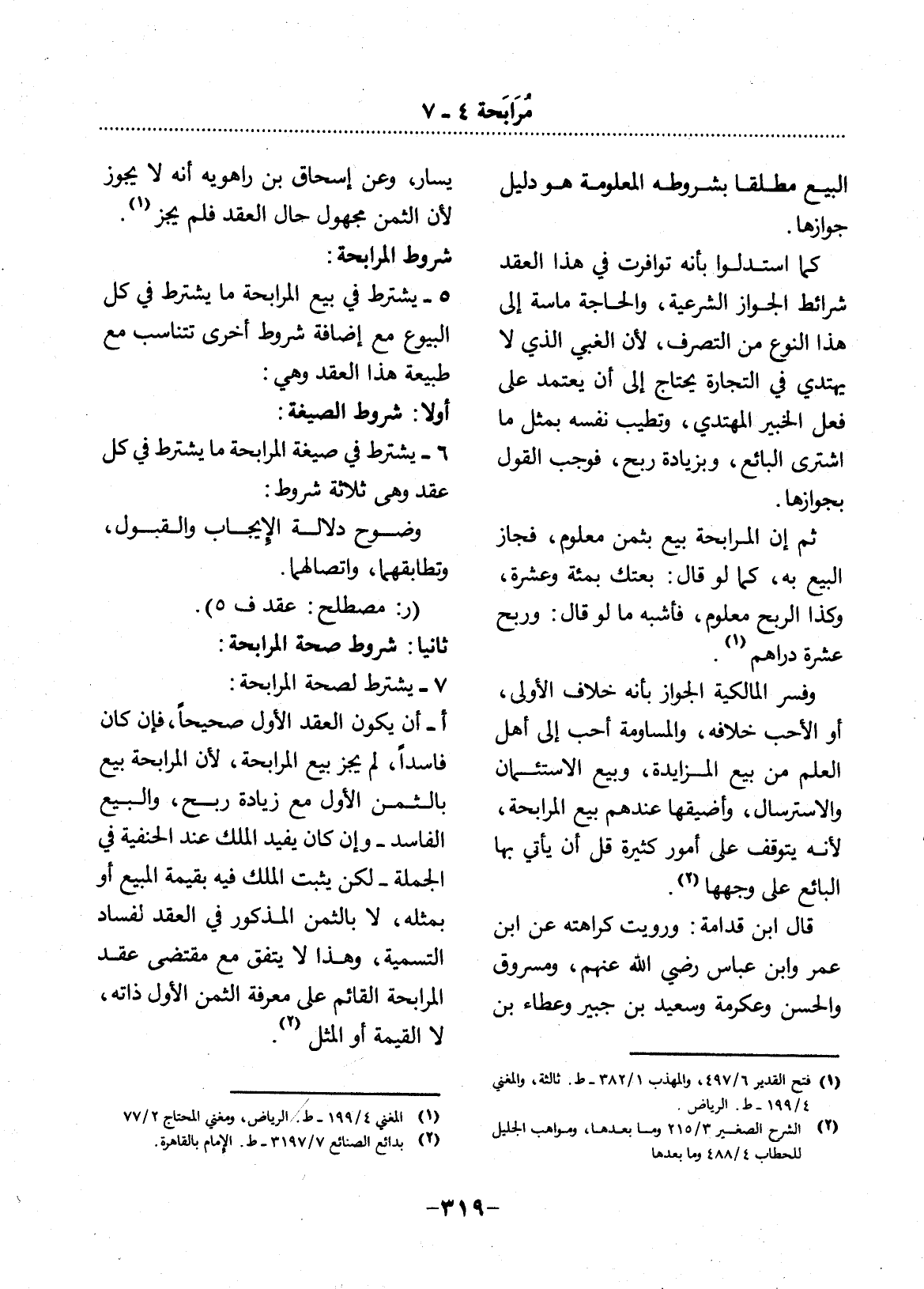 7 - يُشْتَرَطُ لِصِحَّةِ الْمُرَابَحَةِ: