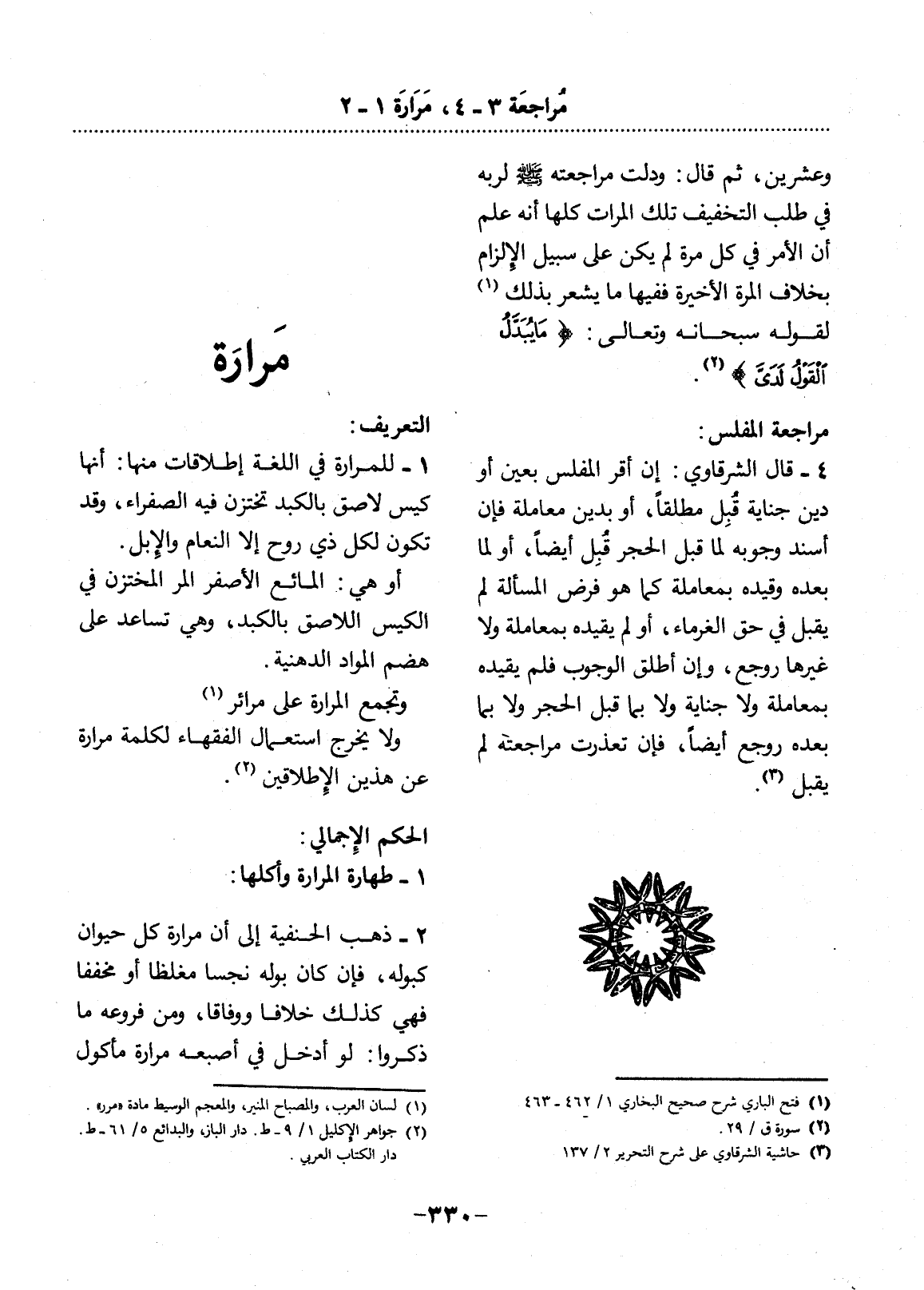 (1) لسان العرب، والمصباح المنير، والمعجم الوسيط مادة " مرر ".