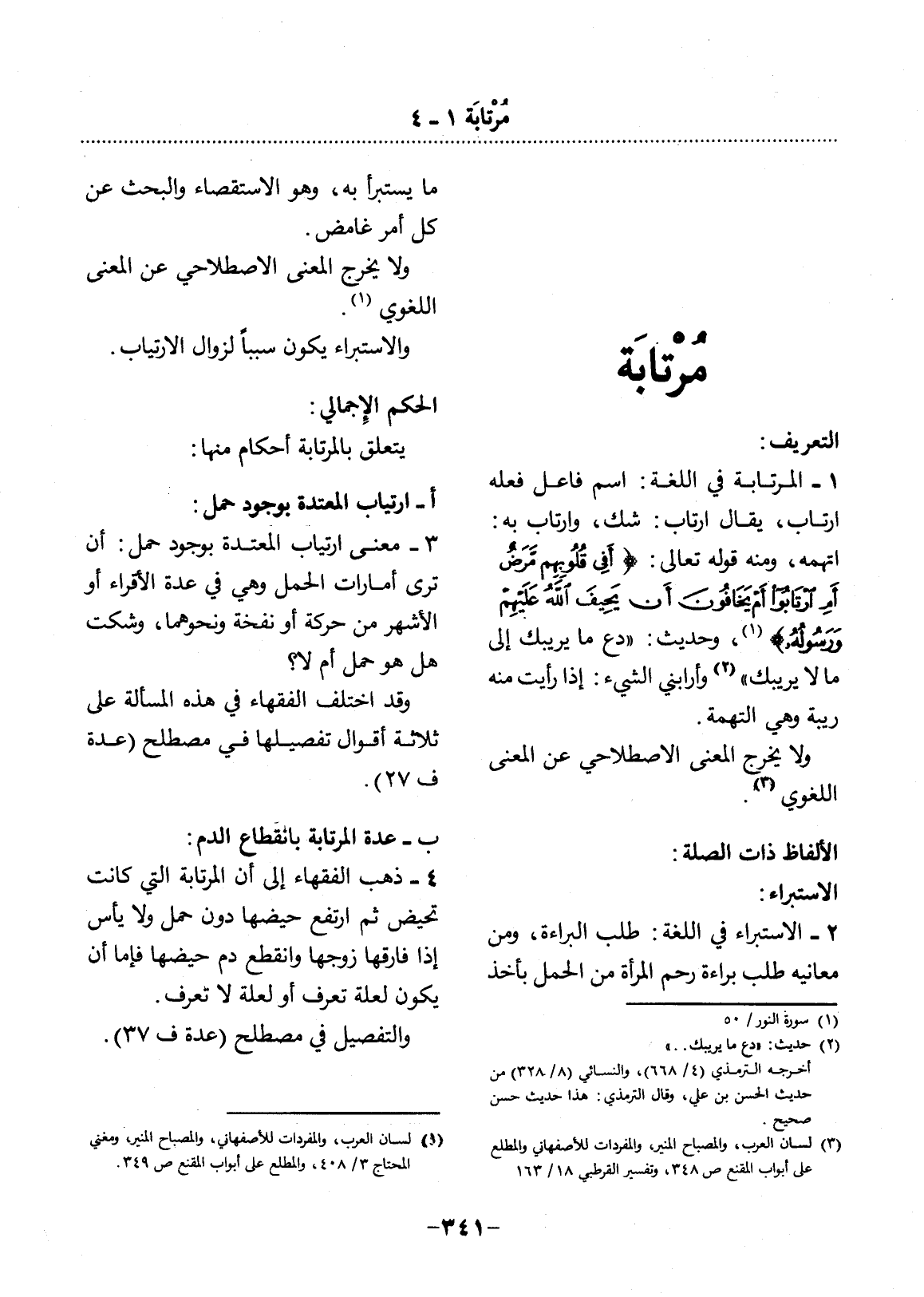 (1) لسان العرب، والمفردات للأصفهاني، والمصباح المنير، ومغني المحتاج 3 / 408، والمطلع على أبواب المقنع ص349.