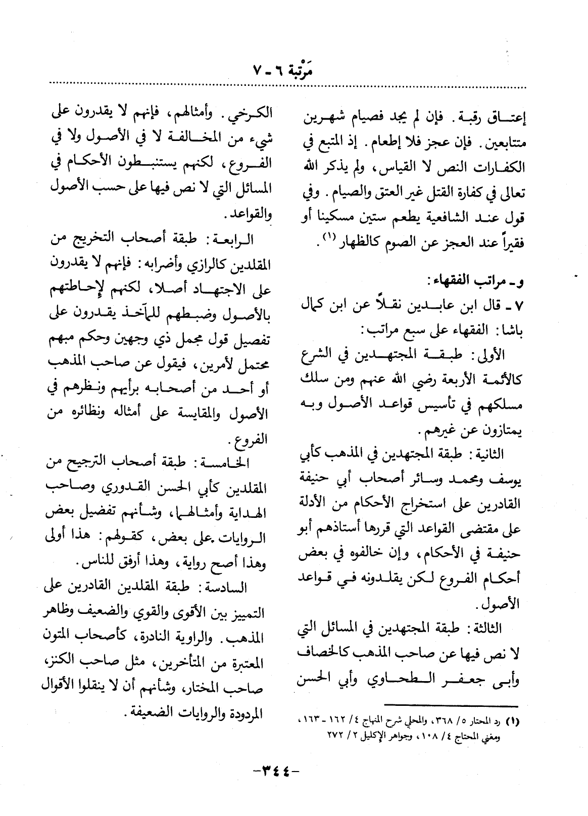 7 - قَال ابْنُ عَابِدِينَ نَقْلاً عَنِ ابْنِ كَمَالٍ بَاشَا: الْفُقَهَاءُ عَلَى سَبْعِ مَرَاتِبَ: