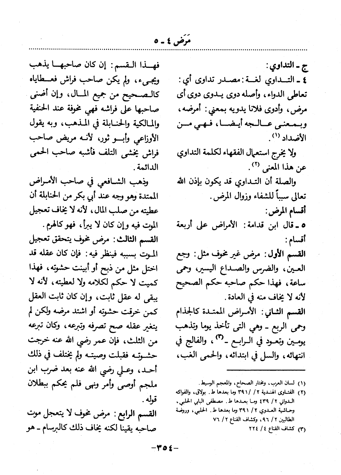 5 - قَال ابْنُ قُدَامَةَ: الأَْمْرَاضُ عَلَى أَرْبَعَةِ أَقْسَامٍ:
