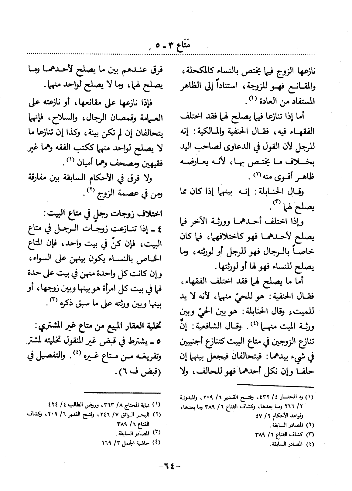 4 - إِذَا تَنَازَعَتْ زَوْجَاتُ الرَّجُل فِي مَتَاعِ الْبَيْتِ فَإِنْ كُنَّ فِي بَيْتٍ وَاحِدٍ فَإِنَّ الْمَتَاعَ الْخَاصَّ بِالنِّسَاءِ يَكُونُ بَيْنَهُنَّ عَلَى السَّوَاءِ، وَإِنْ كَانَتْ كُل وَاحِدَةٍ مِنْهُنَّ فِي بَيْتٍ عَلَى حِدَةٍ فَمَا فِي بَيْتِ كُل امْرَأَةٍ هُوَ بَيْنَهَا وَبَيْنَ زَوْجِهَا أَوْ بَيْنَهَا وَبَيْنَ وَرَثَتِهِ عَلَى مَا سَبَقَ ذِكْرُهُ (3) .