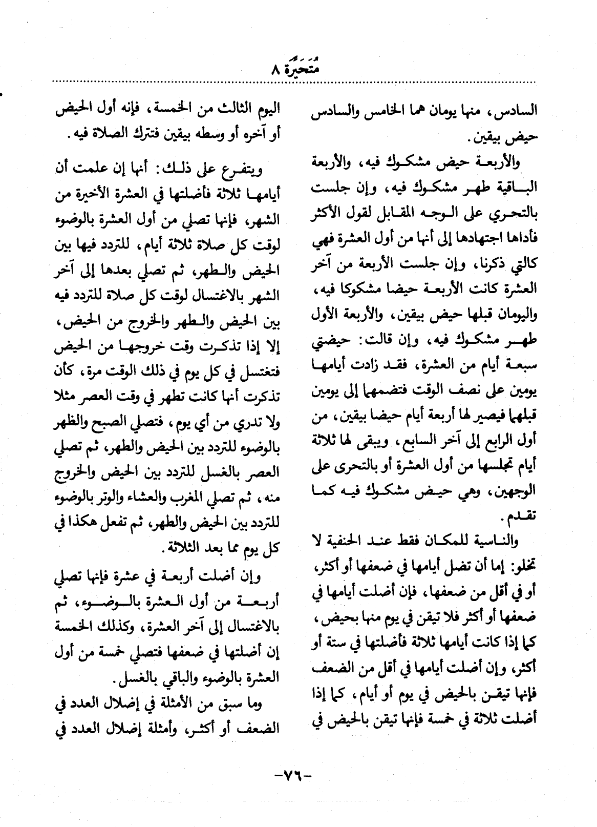 السَّادِسِ، مِنْهَا يَوْمَانِ هُمَا الْخَامِسُ وَالسَّادِسُ حَيْضٌ بِيَقِينٍ.
