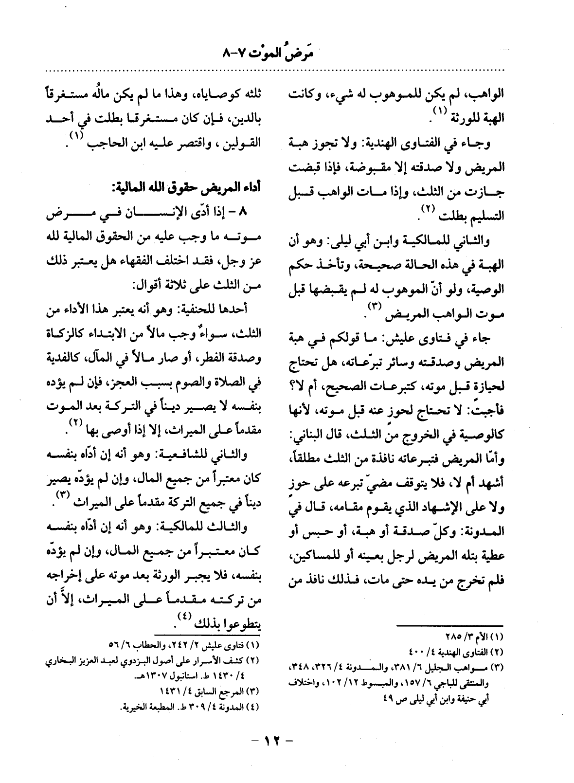 (3) مواهب الجليل 6 / 381، والمدونة 4 / 326، 348، والمنتقى للباجي 6 / 157، والمبسوط 12 / 102، واختلاف أبي حنيفة وابن أبي ليلى ص49.