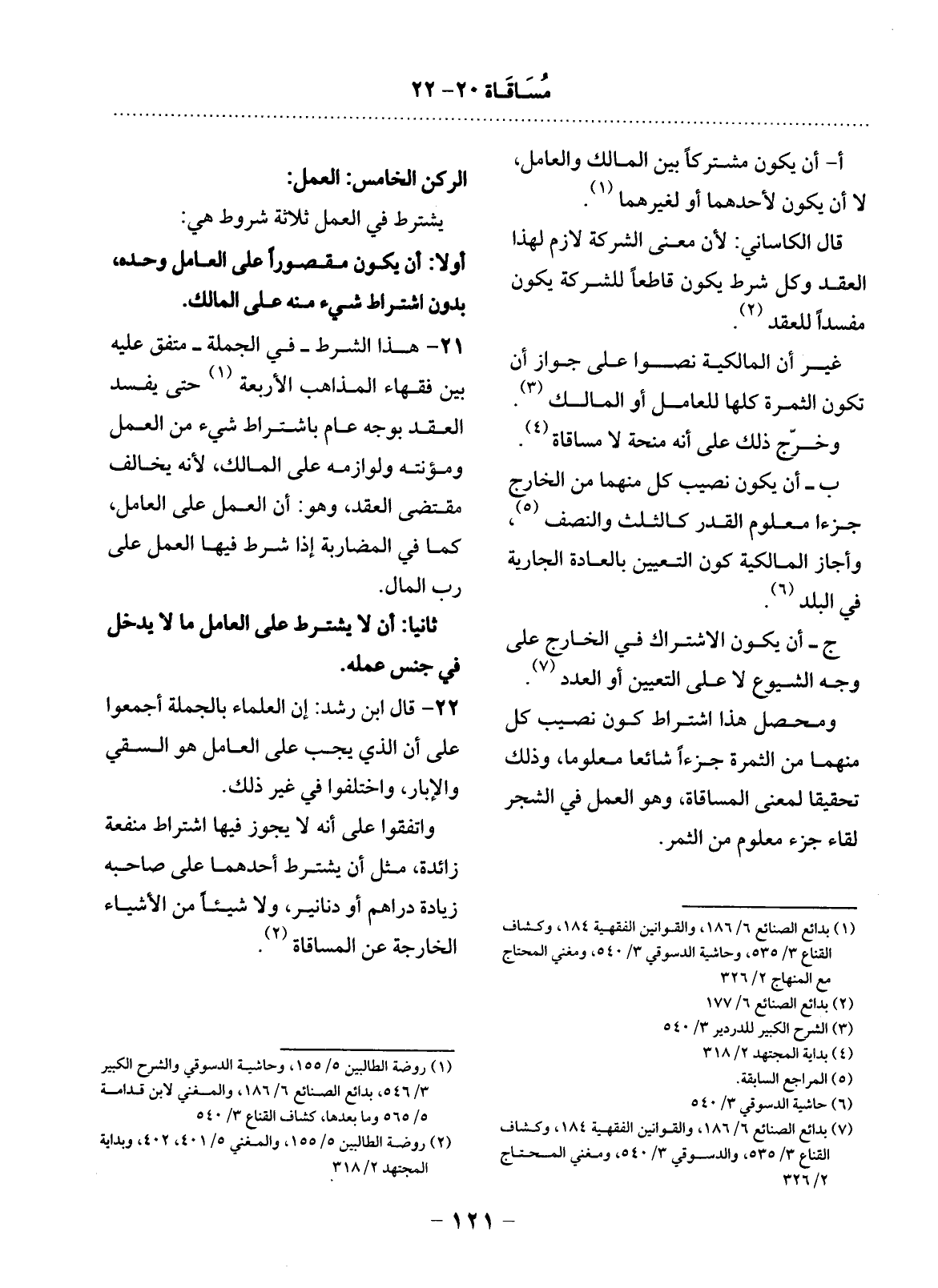22 - قَال ابْنُ رُشْدٍ: إِنَّ الْعُلَمَاءَ بِالْجُمْلَةِ أَجْمَعُوا عَلَى أَنَّ الَّذِي يَجِبُ عَلَى الْعَامِل هُوَ السَّقْيُ وَالإِْبَارُ وَاخْتَلَفُوا فِي غَيْرِ ذَلِكَ.