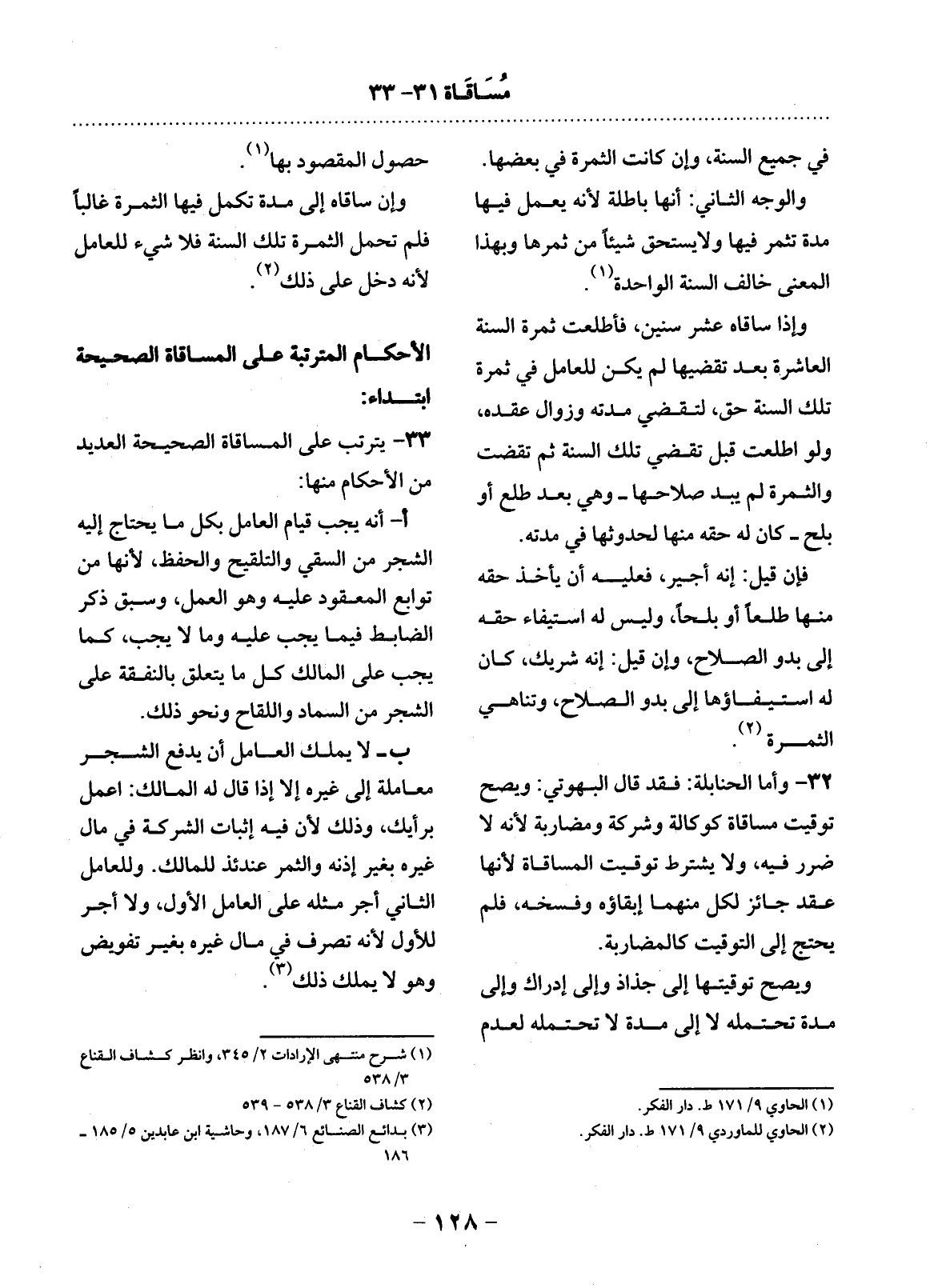 33 - يَتَرَتَّبُ عَلَى الْمُسَاقَاةِ الصَّحِيحَةِ الْعَدِيدُ مِنَ الأَْحْكَامِ مِنْهَا: