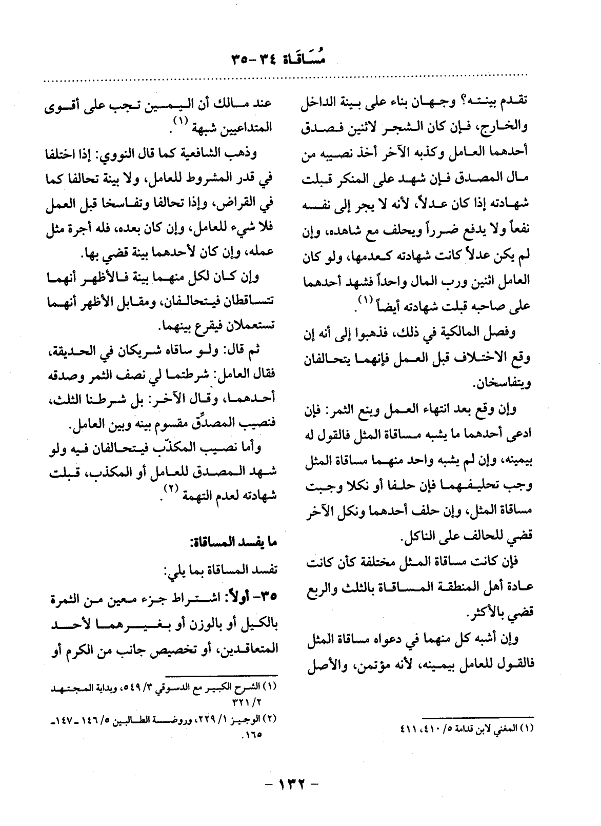 35 - أَوَّلاً: اشْتِرَاطُ جُزْءٍ مُعَيَّنٍ مِنَ الثَّمَرَةِ بِالْكَيْل أَوْ بِالْوَزْنِ أَوْ: بِغَيْرِهِمَا لأَِحَدِ الْمُتَعَاقِدَيْنِ، أَوْ تَخْصِيصُ جَانِبٍ مِنَ الْكَرْمِ أَوِ