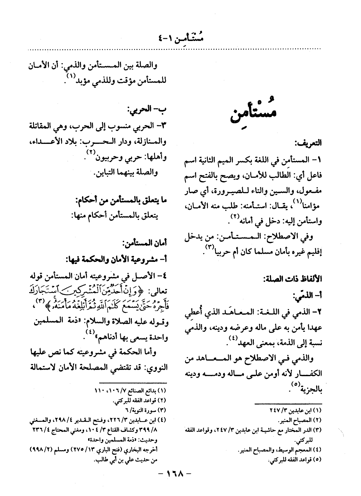 مَا يَتَعَلَّقُ بِالْمُسْتَأْمِنِ مِنْ أَحْكَامٍ: