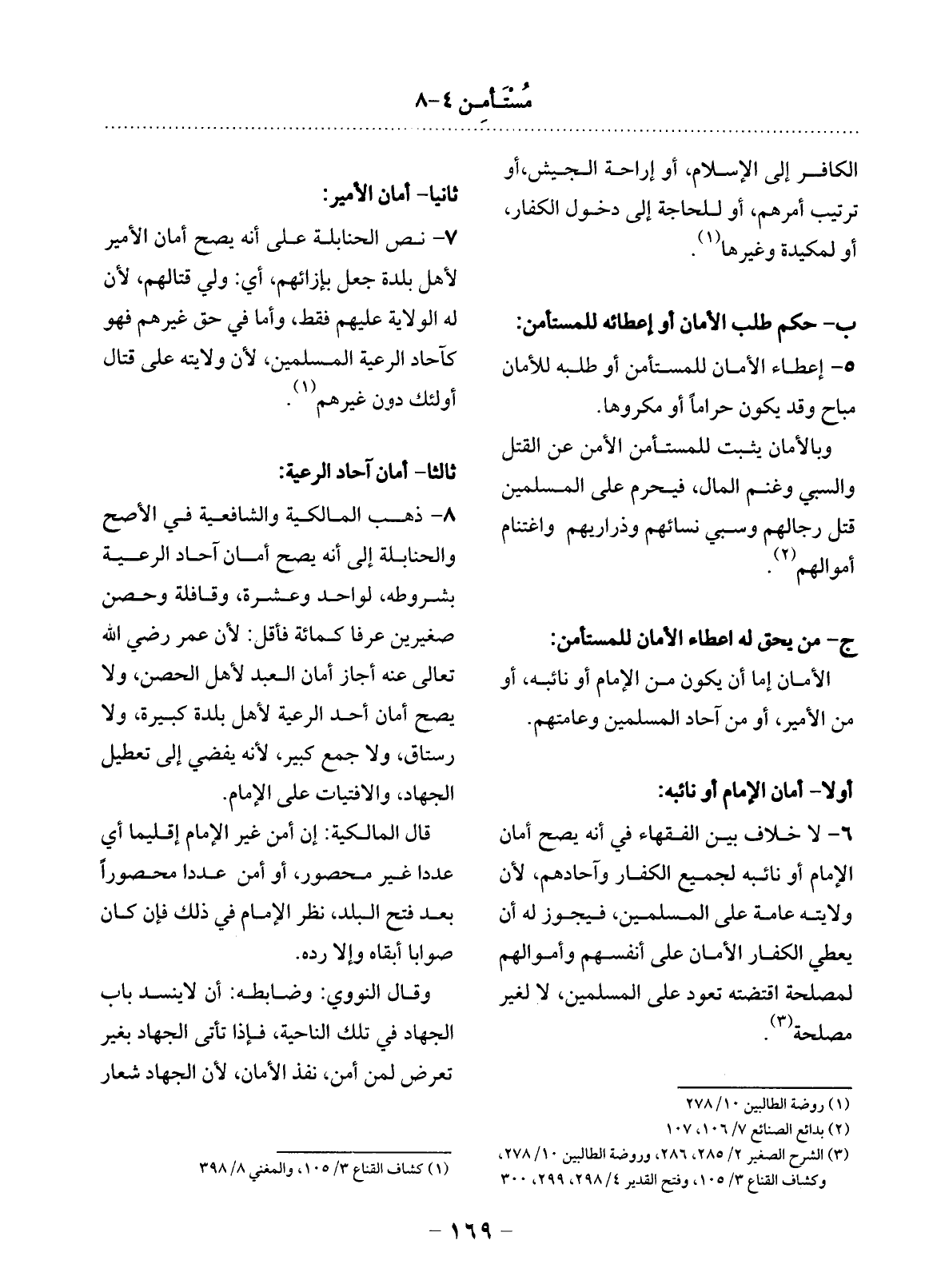ثَانِيًا - أَمَانُ الأَْمِيرِ:
