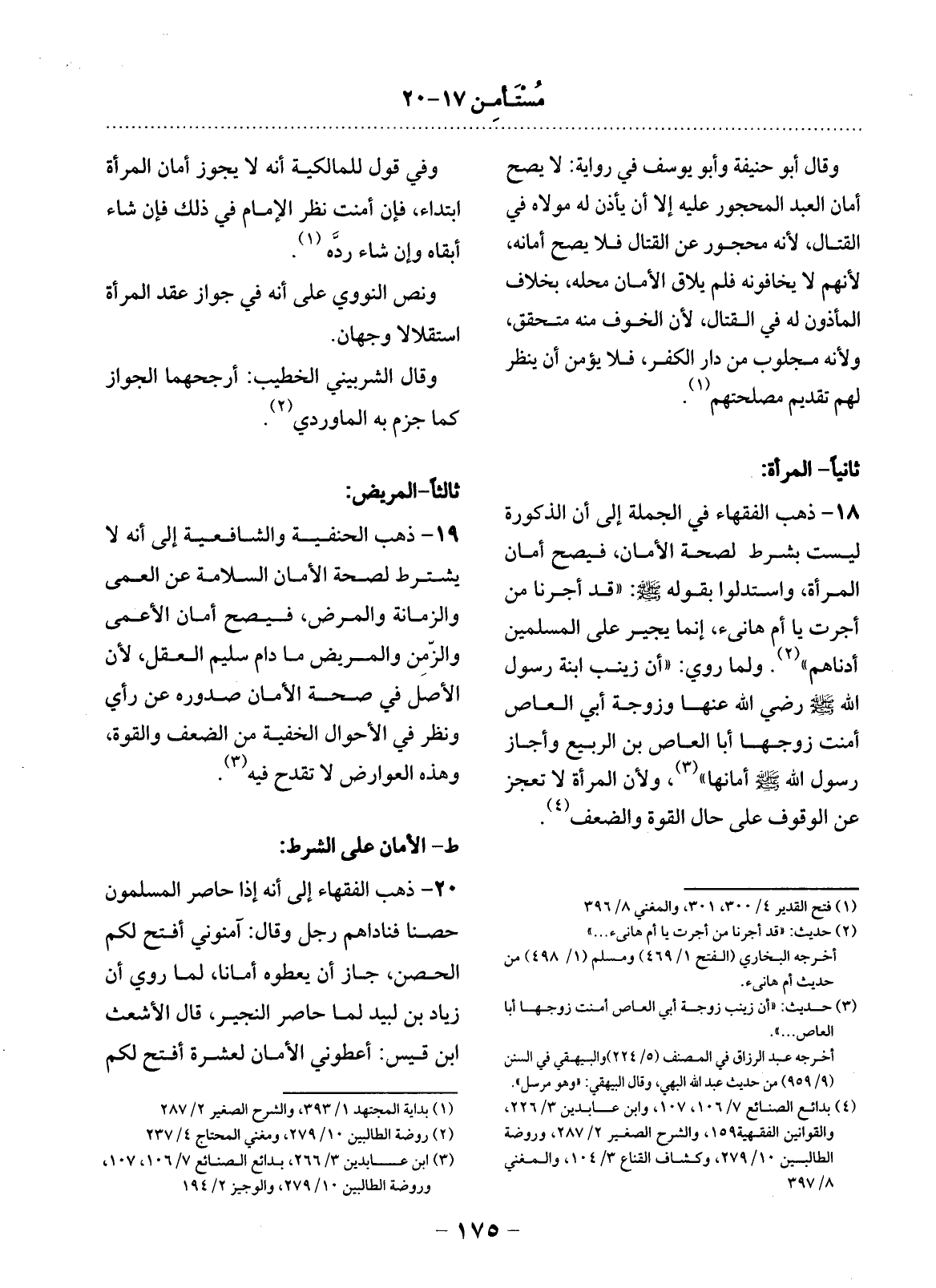 (2) حديث: " قد أجرنا من أجرت يا أم هانئ. . . . ". أخرجه البخاري (الفتح 1 / 469) ومسلم (1 / 498) من حديث أم هانئ.