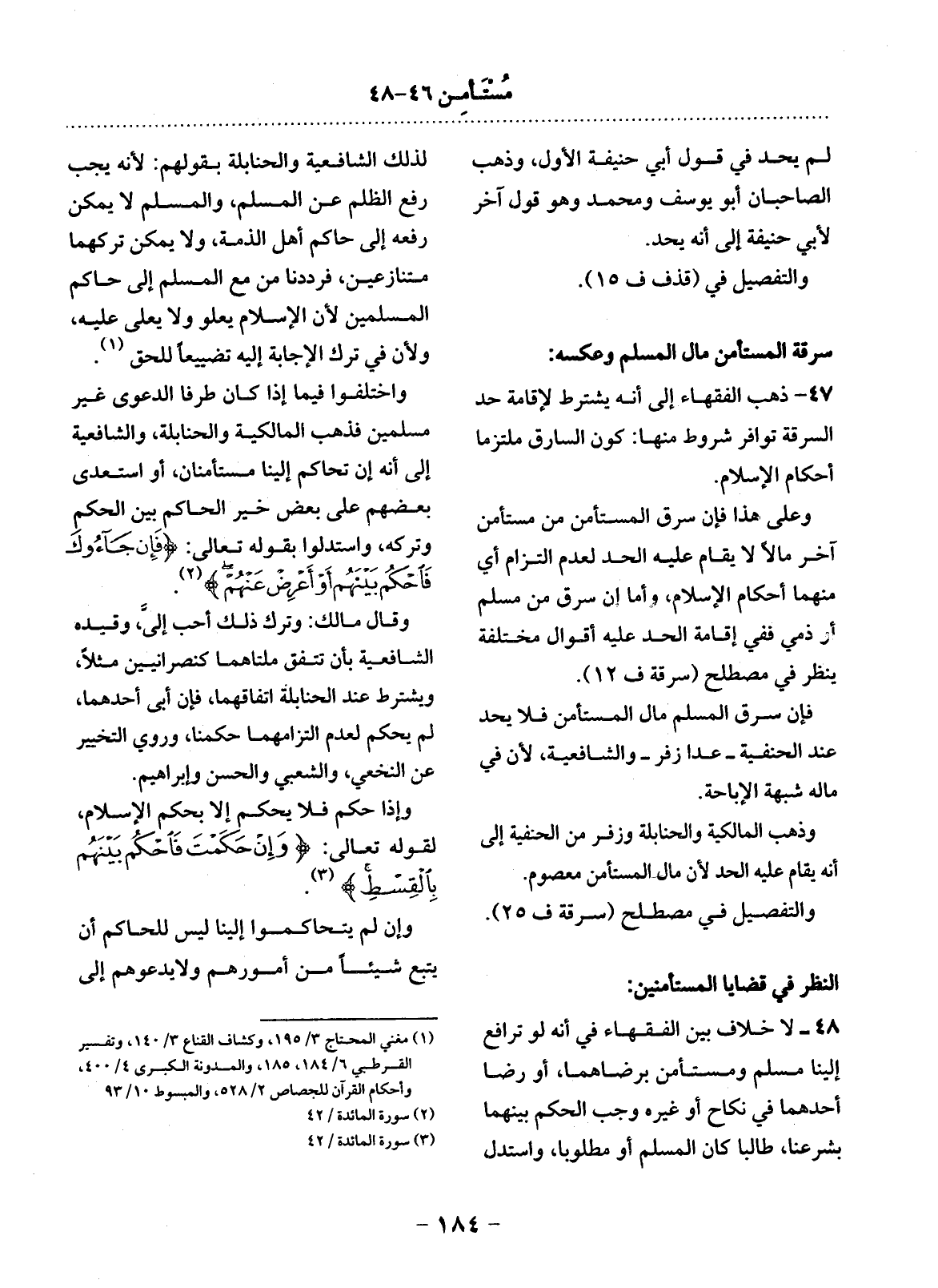 (1) مغني المحتاج 3 / 195، وكشاف القناع 3 / 140، وتفسير القرطبي 6 / 184، 185، والمدونة الكبرى 4 / 400، وأحكام القرآن للجصاص 2 / 528، والمبسوط 10 / 93.