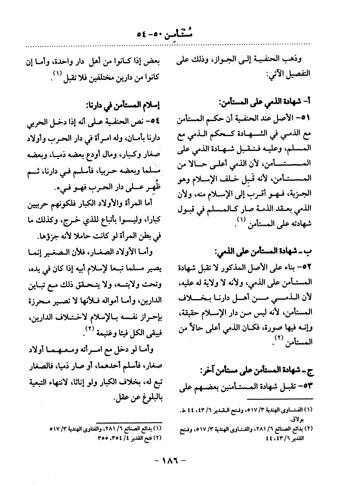 53 - تُقْبَل شَهَادَةُ الْمُسْتَأْمِنِينَ بَعْضِهِمْ عَلَى