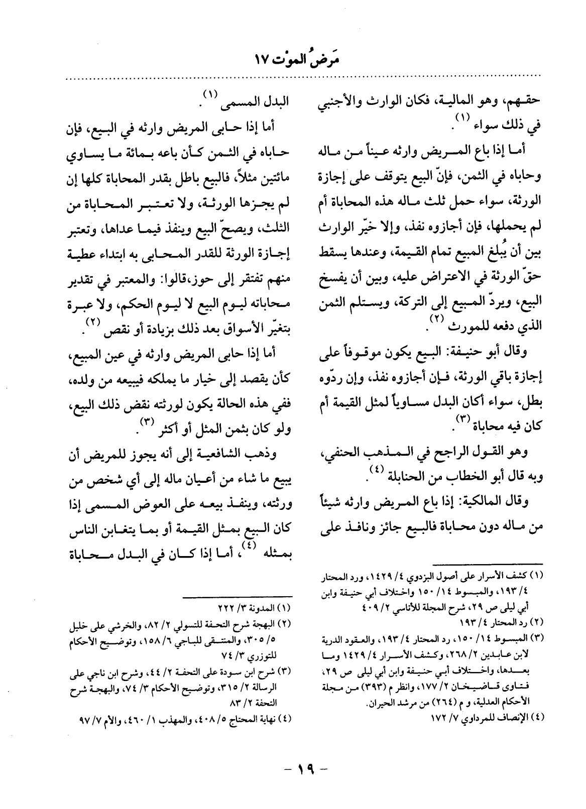 (3) المبسوط 14 / 150، رد المحتار 4 / 193، والعقود الدرية لابن عابدين 2 / 268، وكشف الأسرار 4 / 1429 وما بعدها، واختلاف أبي حنيفة وابن أبي ليلى ص29، فتاوى قاضيخان 2 / 177، وانظر م (393) من مجلة الأحكام العدلية، وم (264) من مرشد الحيران.