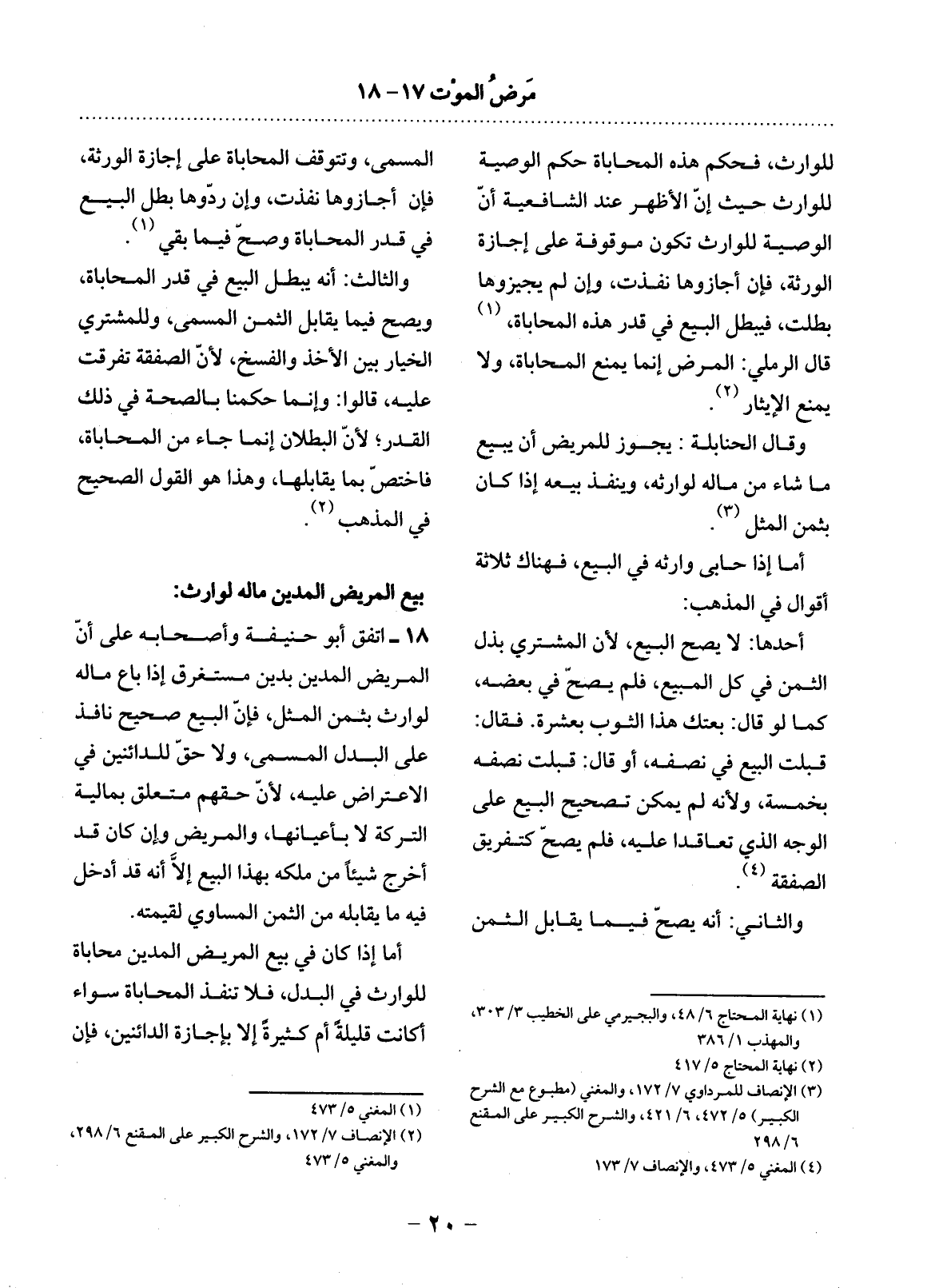 (3) الإنصاف للمرداوي 7 / 172، والمغني (مطبوع مع الشرح الكبير) 5 / 472، 6 / 421، والشرح الكبير على المقنع 6 / 298.