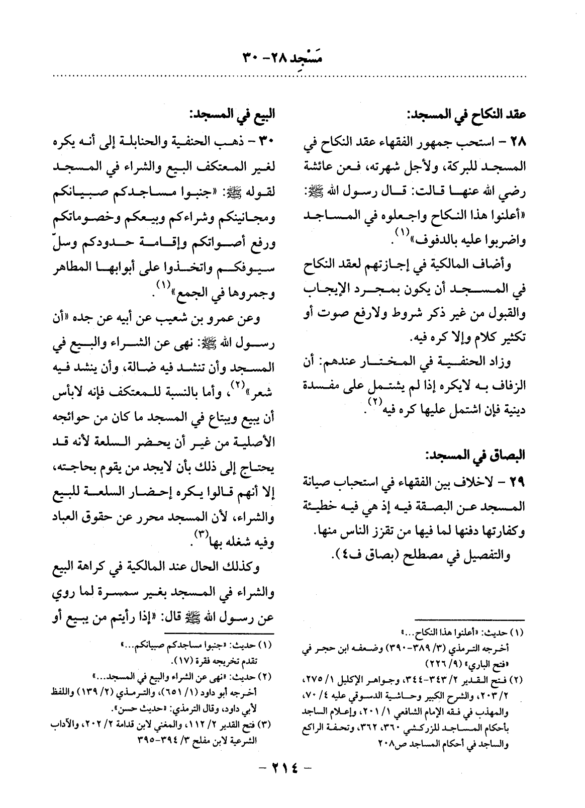(2) فتح القدير 2 / 343 - 344، وجواهر الإكليل 1 / 275، 2 / 203، والشرح الكبير وحاشية الدسوقي عليه 4 / 70، والمهذب في فقه الإمام الشافعي 1 / 201، وإعلام الساجد بأحكام المساجد للزركشي 360، 362، وتحفة الراكع والساجد في أحكام المساجد ص208.