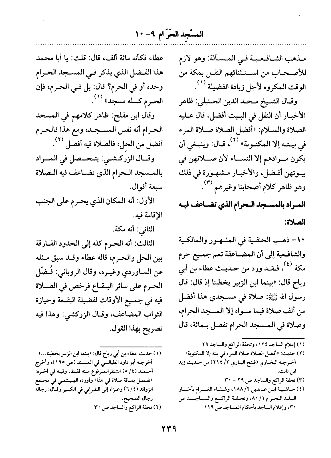 (4) حاشية ابن عابدين 2 / 188، وشفاء الغرام بأخبار البلد الحرام 1 / 80، وتحفة الراكع والساجد ص30، وإعلام الساجد بأحكام المساجد ص119.