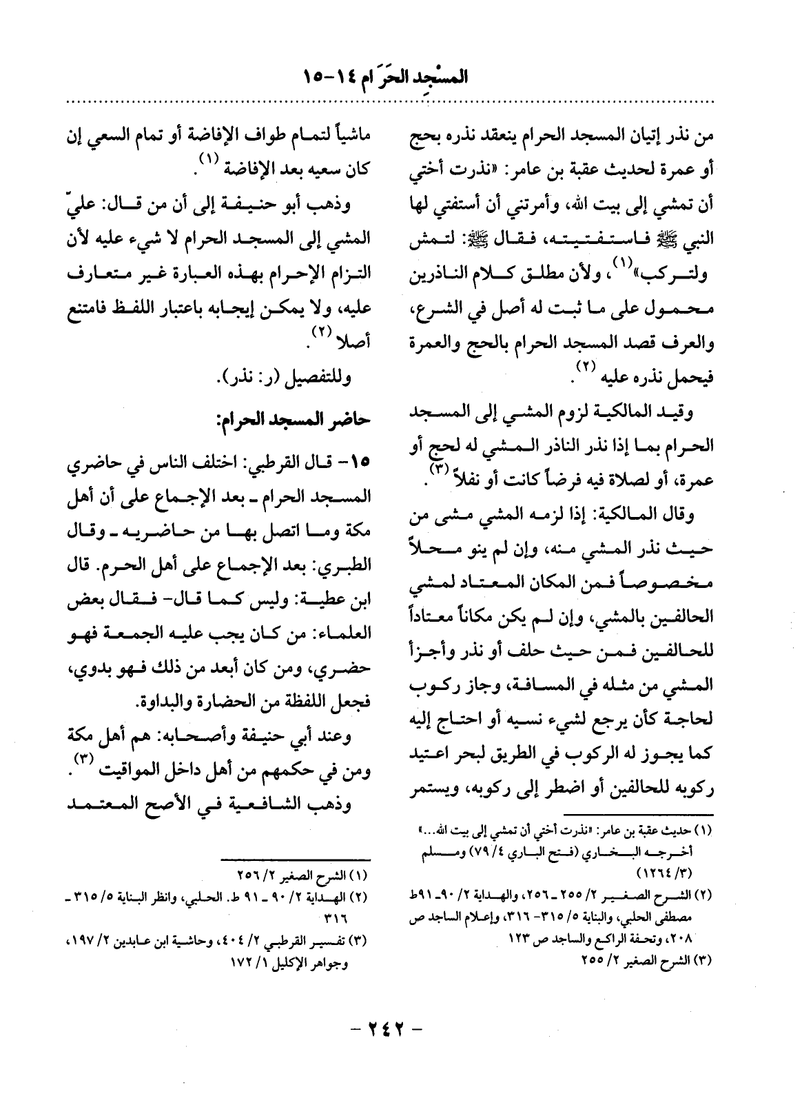 (1) حديث عقبة بن عامر: " نذرت أختي أن تمشي إلى بيت الله. . . ". أخرجه البخاري (فتح الباري 4 / 79) ومسلم (3 / 1264) .