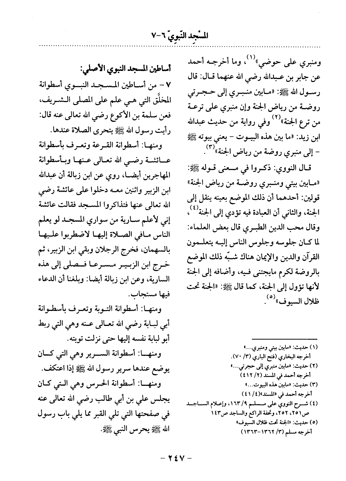 (1) حديث: " ما بين بيتي ومنبري. . . ". أخرجه البخاري (فتح الباري 3 / 70) .