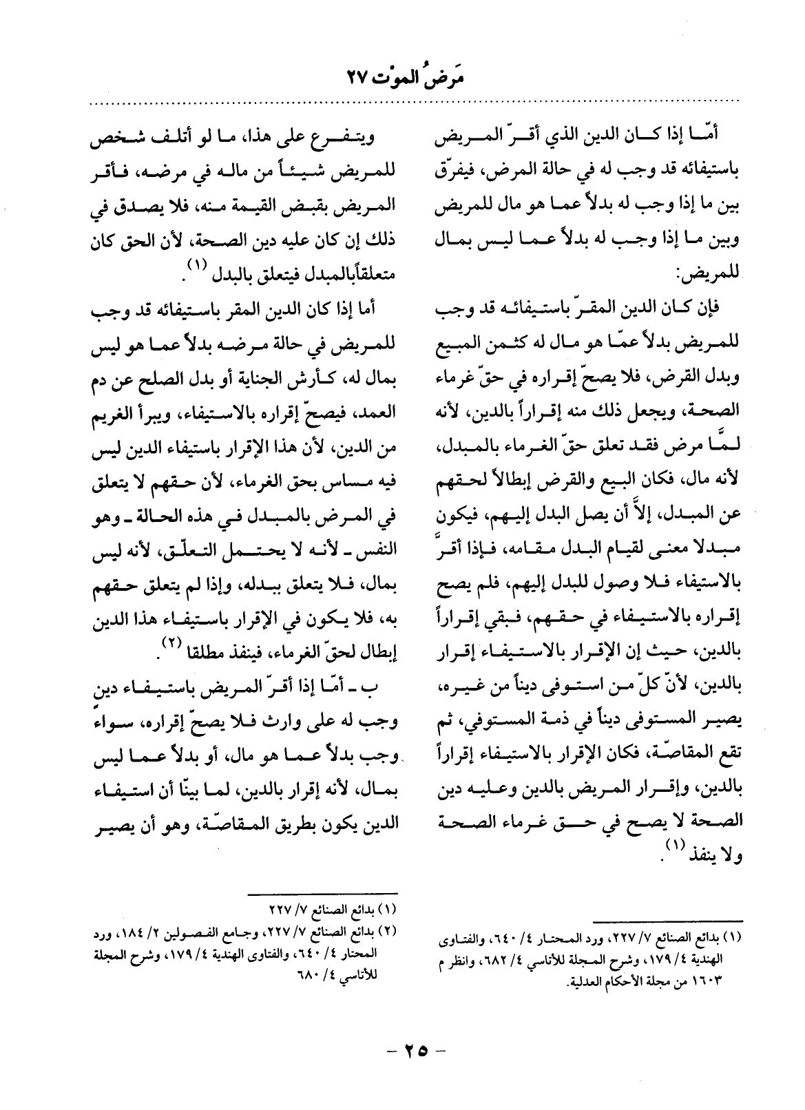 (1) بدائع الصنائع 7 / 227، ورد المحتار 4 / 640، والفتاوى الهندية 4 / 179، وشرح المجلة للأتاسي 4 / 682، وانظر م 1603 من مجلة الأحكام العدلية.