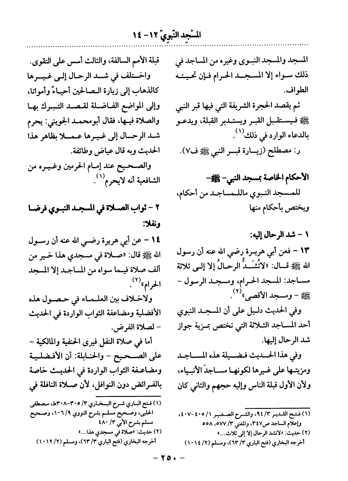 13 - فَعَنْ أَبِي هُرَيْرَةَ رَضِيَ اللَّهُ عَنْهُ أَنَّ رَسُول اللَّهِ صَلَّى اللَّهُ عَلَيْهِ وَسَلَّمَ قَال: لاَ تُشَدُّ الرِّحَال إِلاَّ إِلَى ثَلاَثَةِ مَسَاجِدَ: الْمَسْجِدِ الْحَرَامِ، وَمَسْجِدِ الرَّسُول - صَلَّى اللَّهُ عَلَيْهِ وَسَلَّمَ - وَمَسْجِدِ الأَْقْصَى (2) .