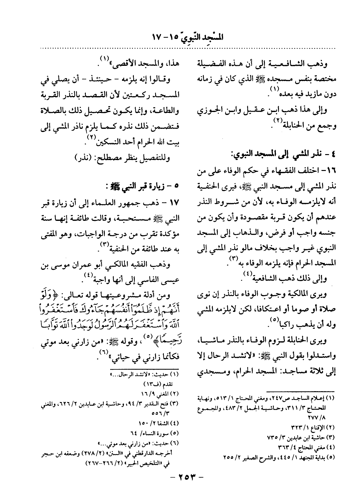 4 - نَذْرُ الْمَشْيِ إِلَى الْمَسْجِدِ النَّبَوِيِّ