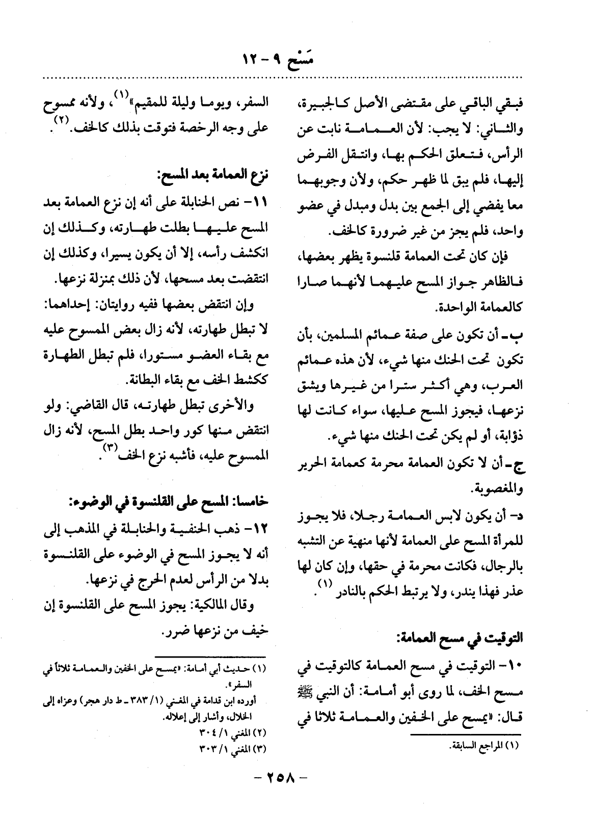 خَامِسًا: الْمَسْحُ عَلَى الْقَلَنْسُوَةِ فِي الْوُضُوءِ: