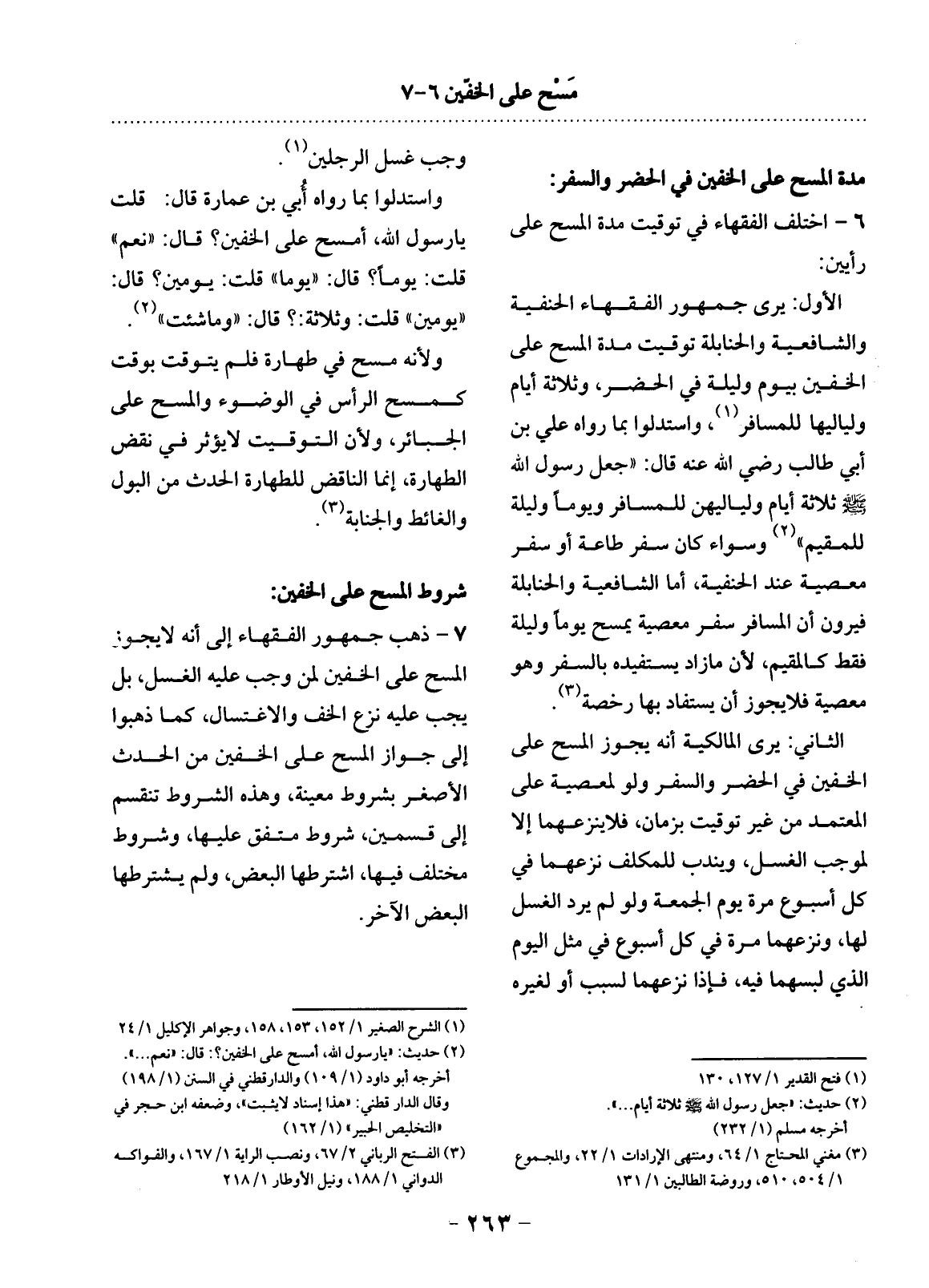 مُدَّةُ الْمَسْحِ عَلَى الْخُفَّيْنِ فِي الْحَضَرِ وَالسَّفَرِ: