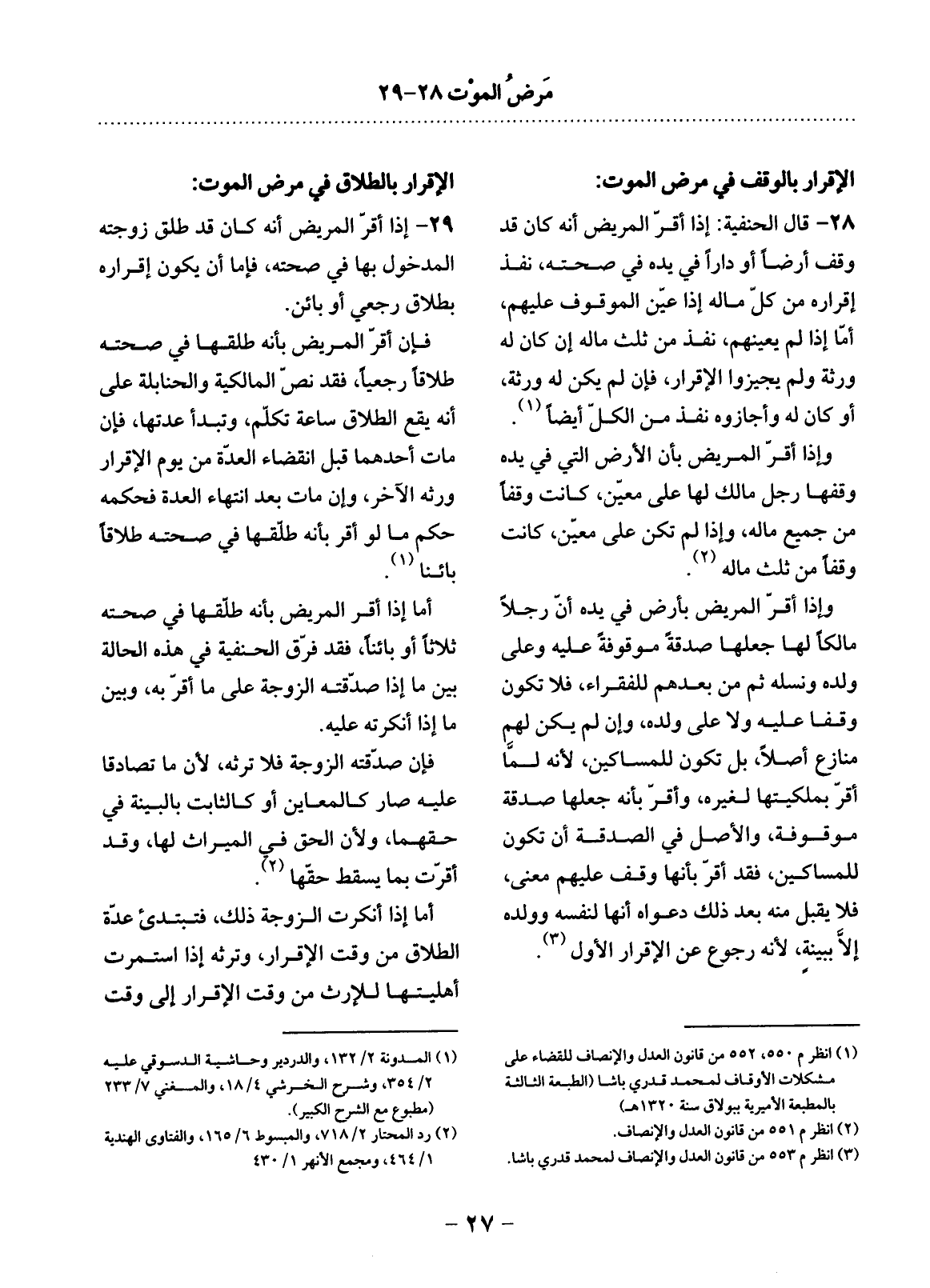 (1) انظر م550، 552، من قانون العدل والإنصاف للقضاء على مشكلات الأوقاف لمحمد قدري باشا (الطبعة الثالثة بالمطبعة الأميرية ببولاق سنة 1320 هـ) .