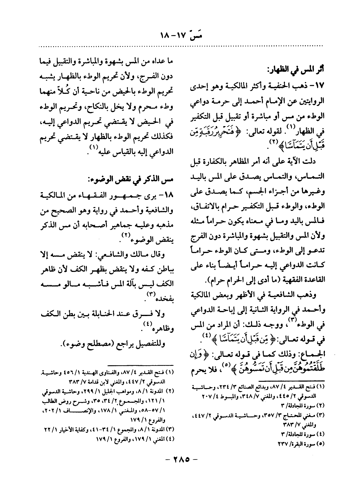 (2) المدونة 1 / 8، ومواهب الجليل 1 / 299، وحاشية الدسوقي 1 / 121، والمجموع 2 / 34، 35، وشرح روض الطالب 1 / 57 - 58، والمغني 1 / 178، والإنصاف 1 / 202، والفروع 1 / 179.