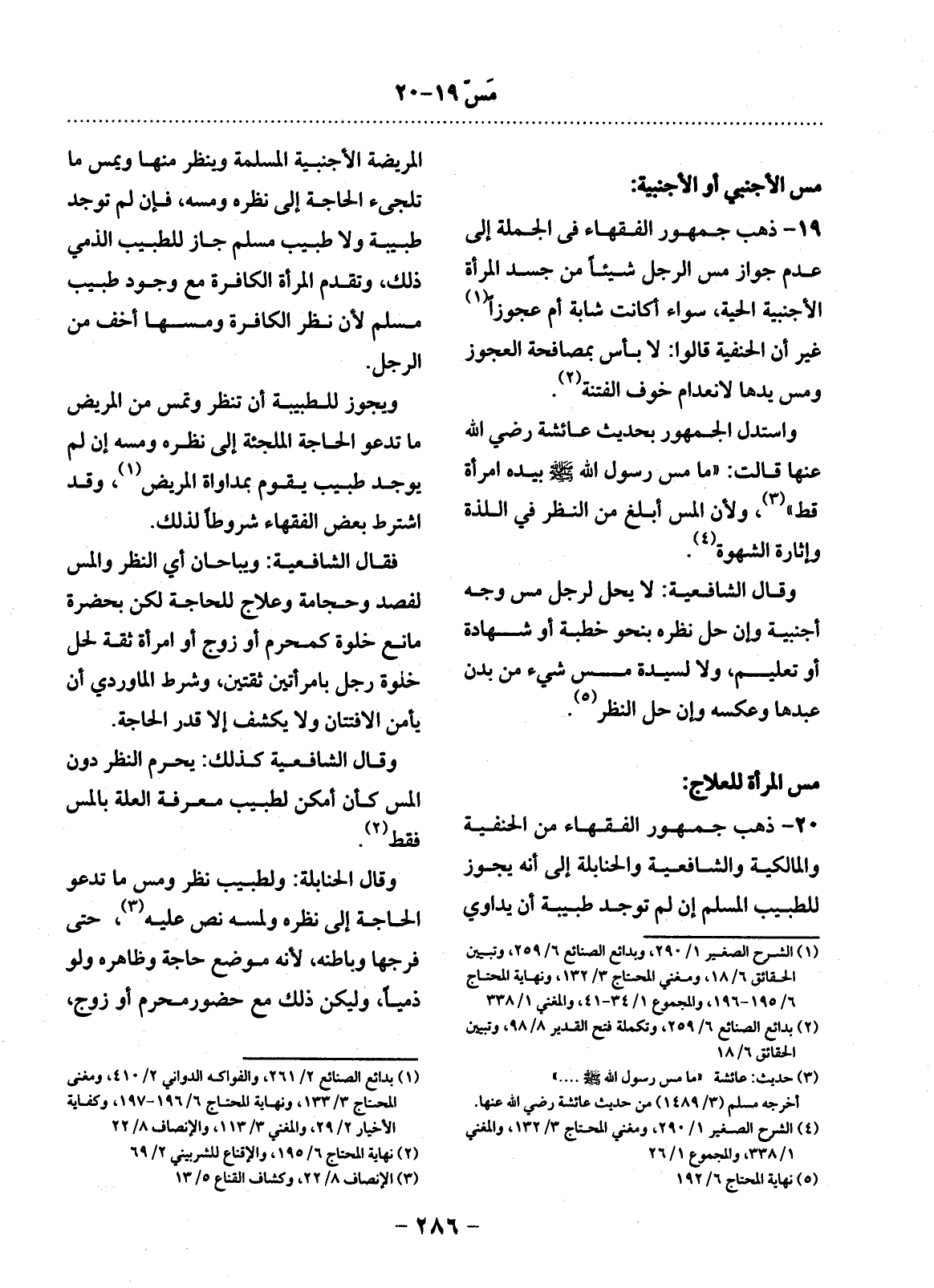 20 - ذَهَبَ جُمْهُورُ الْفُقَهَاءِ مِنَ الْحَنَفِيَّةِ وَالْمَالِكِيَّةِ وَالشَّافِعِيَّةِ وَالْحَنَابِلَةِ إِلَى أَنَّهُ يَجُوزُ لِلطَّبِيبِ الْمُسْلِمِ إِنْ لَمْ تُوجَدْ طَبِيبَةٌ أَنْ يُدَاوِيَ