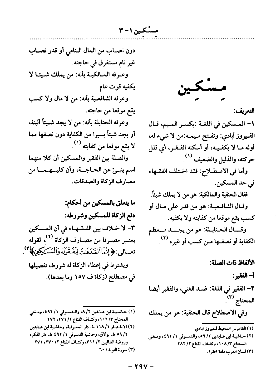 3 - لاَ خِلاَفَ بَيْنَ الْفُقَهَاءِ فِي أَنَّ الْمِسْكِينَ يُعْتَبَرُ مَصْرِفًا مِنْ مَصَارِفِ الزَّكَاةِ (2) ، لِقَوْلِهِ تَعَالَى: {إِنَّمَا الصَّدَقَاتُ لِلْفُقَرَاءِ وَالْمَسَاكِينِ} (3) .