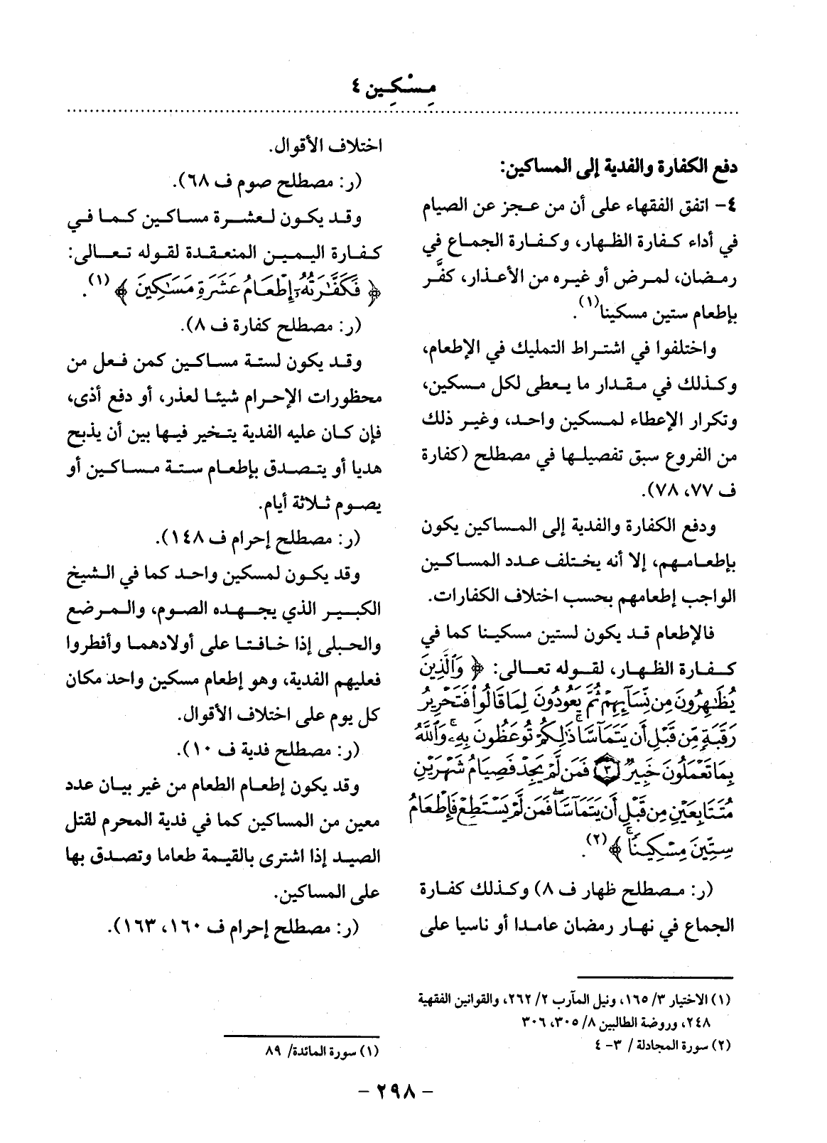دَفْعُ الْكَفَّارَةِ وَالْفِدْيَةِ إِلَى الْمَسَاكِينِ