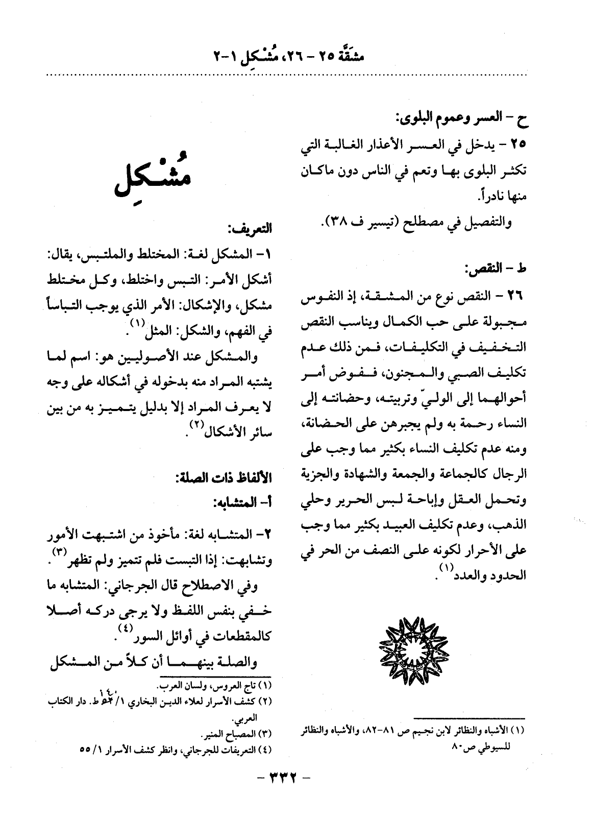 (1) الأشباه والنظائر لابن نجيم ص 81 - 82، والأشباه والنظائر للسيوطي ص 80.
