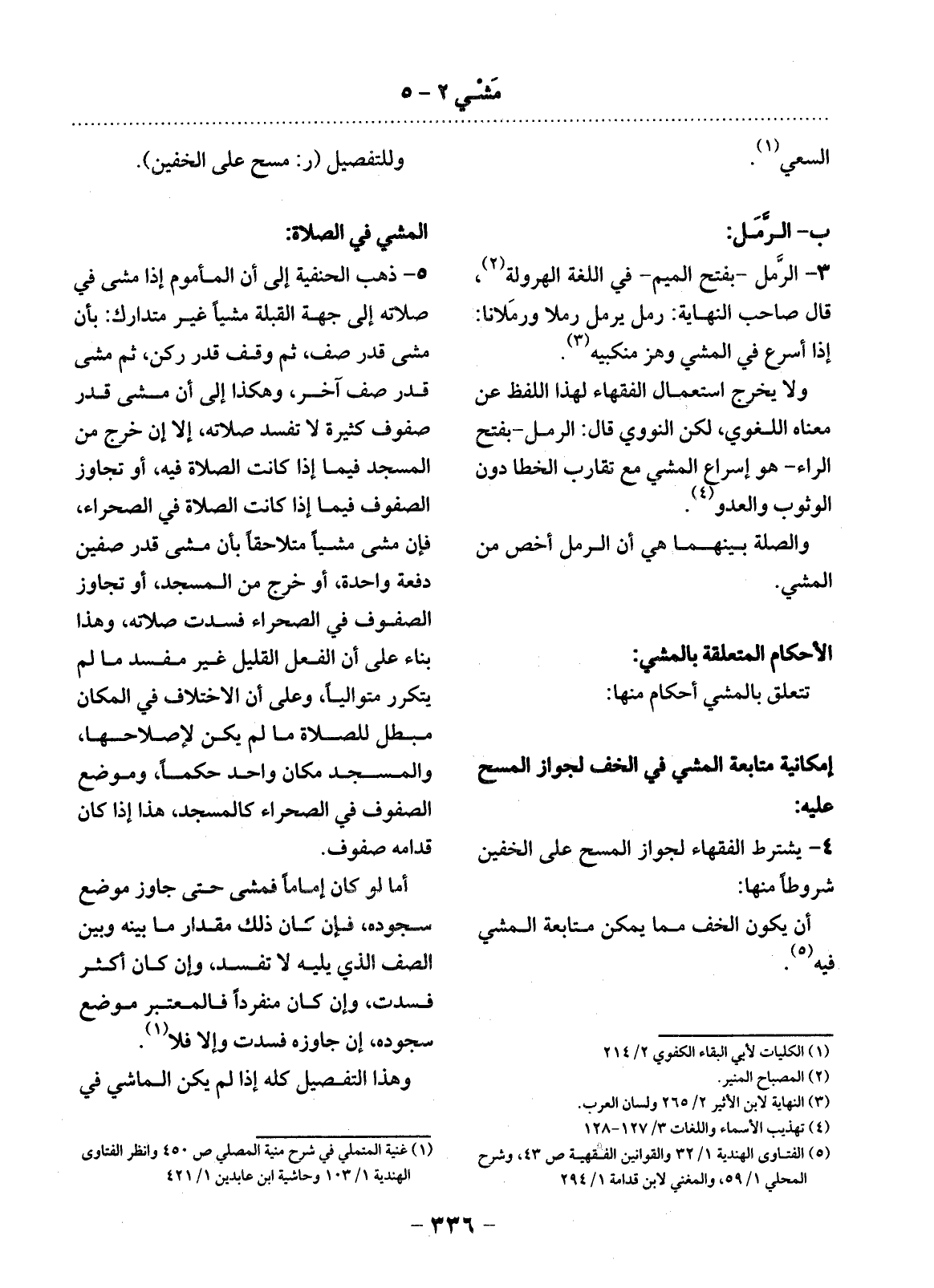 تَتَعَلَّقُ بِالْمَشْيِ أَحْكَامٌ مِنْهَا: