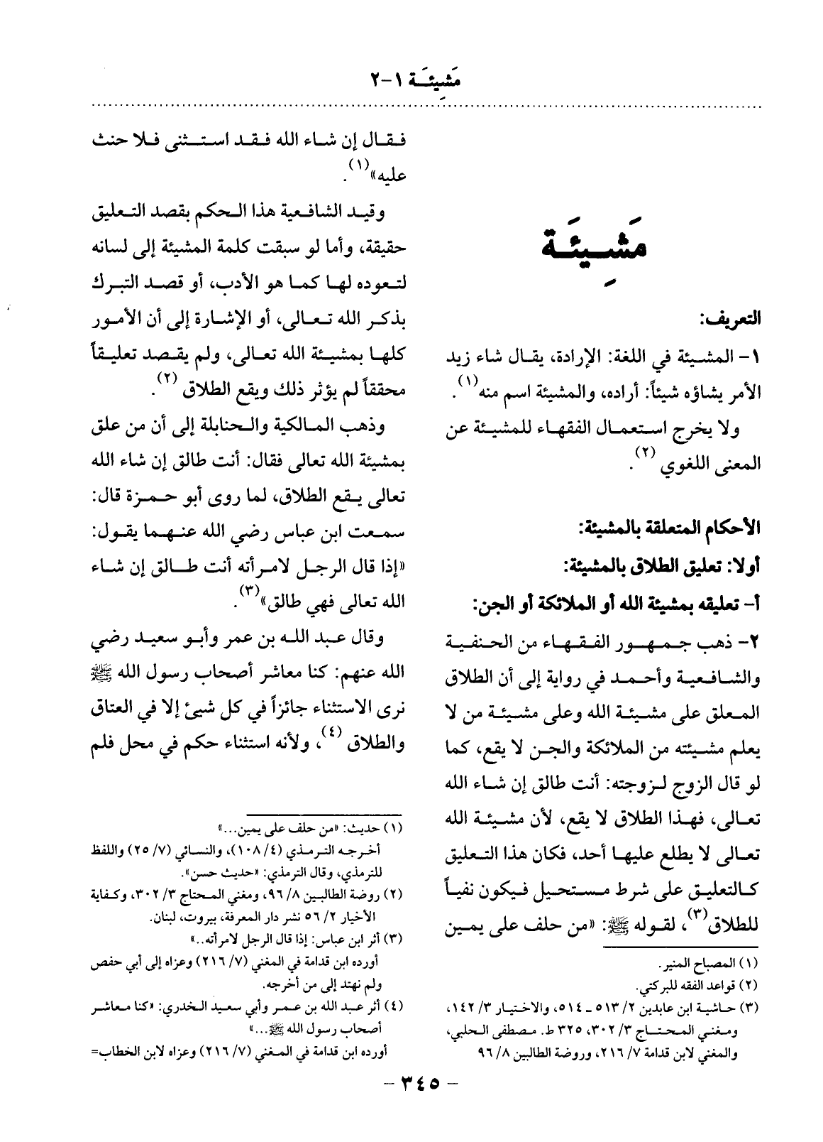 الأَْحْكَامُ الْمُتَعَلِّقَةُ بِالْمُشِيئَةِ: