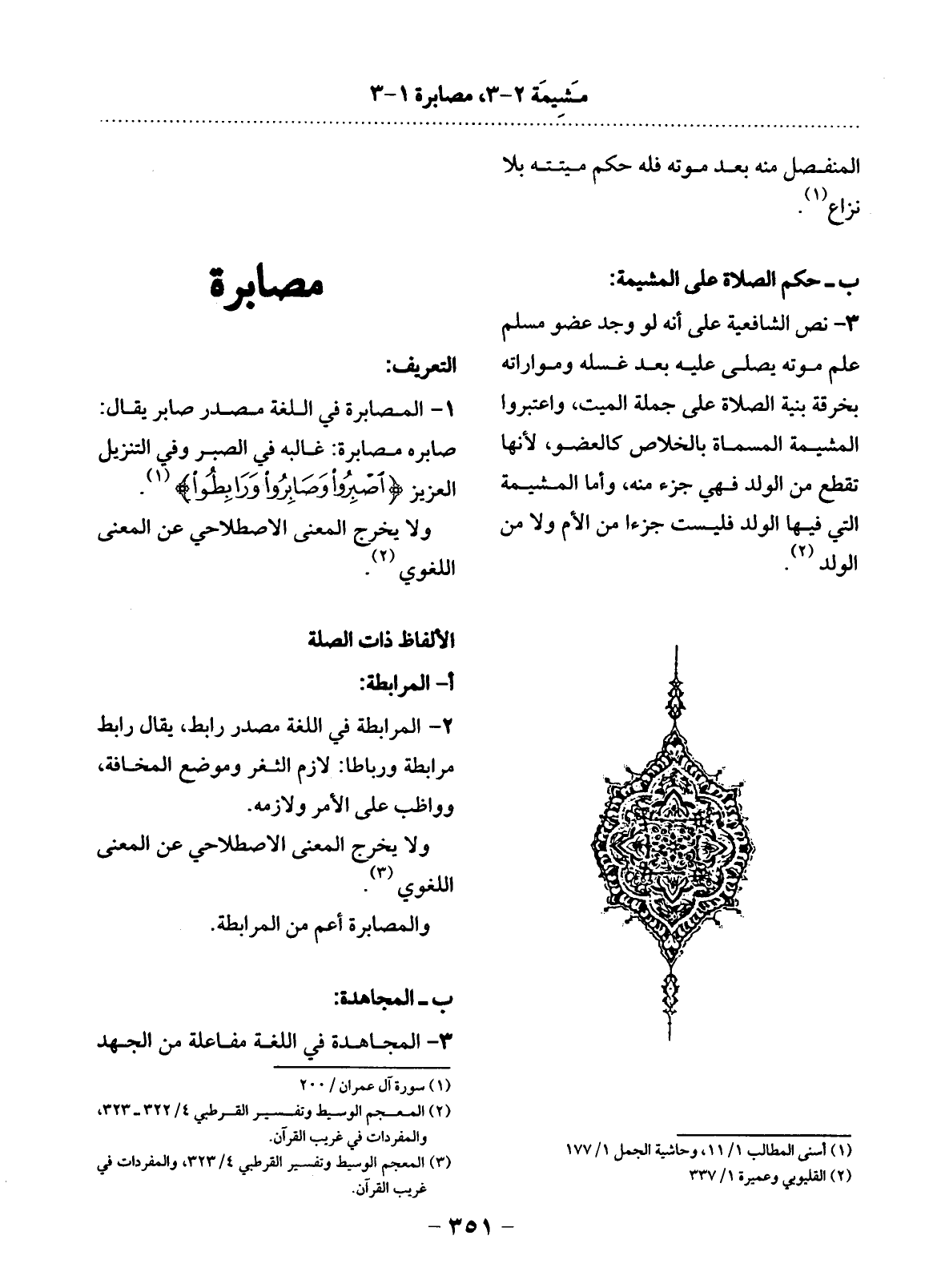 1 - الْمُصَابَرَةُ فِي اللُّغَةِ مَصْدَرُ صَابَرَ يُقَال: