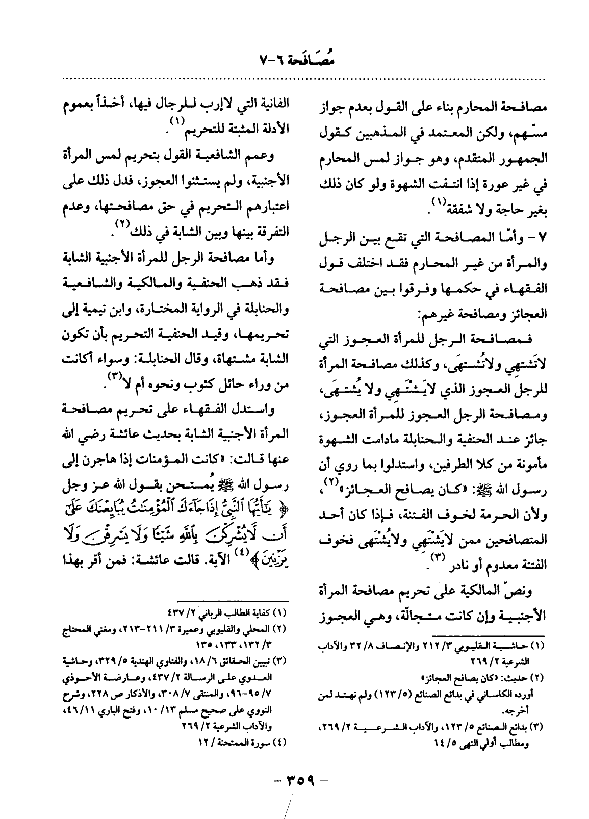 (2) حديث: " كان يصافح العجائز ". أورده الكاساني في بدائع الصنائع (5 / 123) ولم نهتد لمن أخرجه.