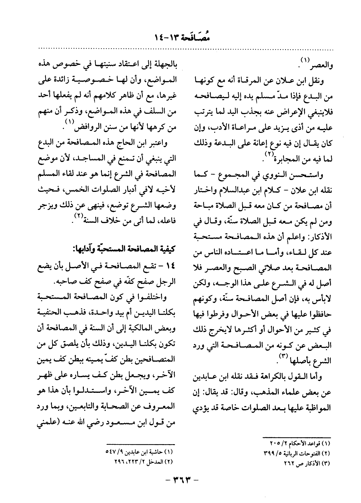 14 - تَقَعُ الْمُصَافَحَةُ فِي الأَْصْل بِأَنْ يَضَعَ الرَّجُل صَفْحَ كَفِّهِ فِي صَفْحِ كَفِّ صَاحِبِهِ.